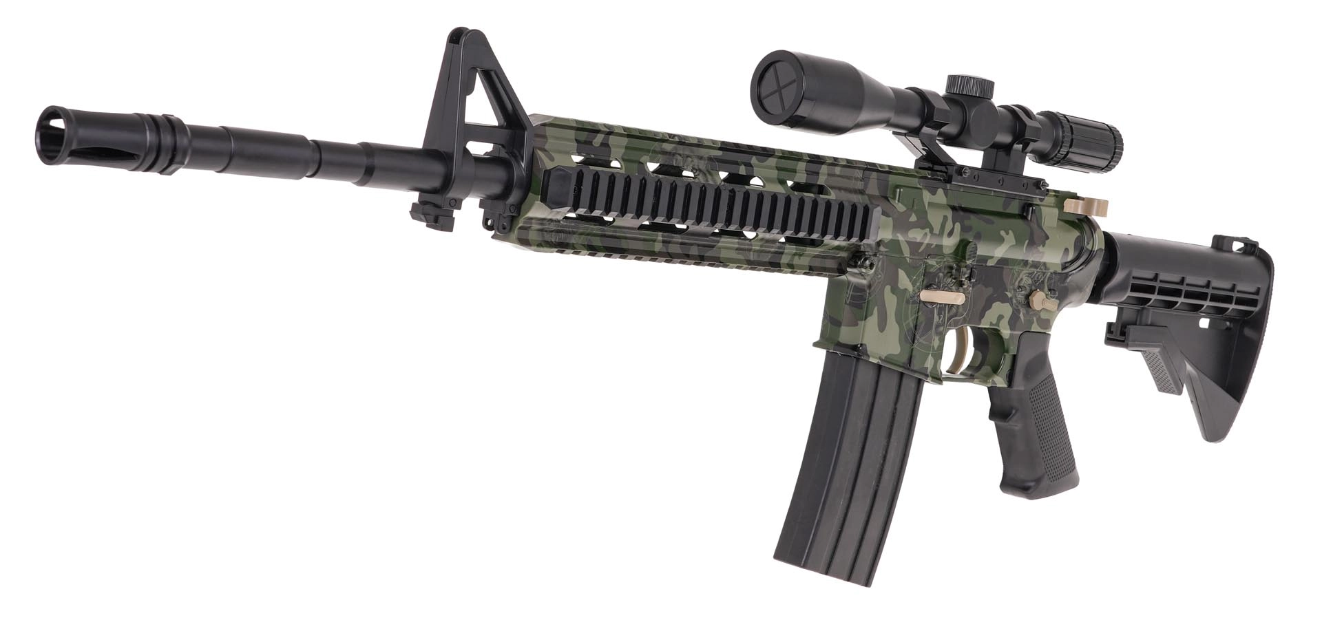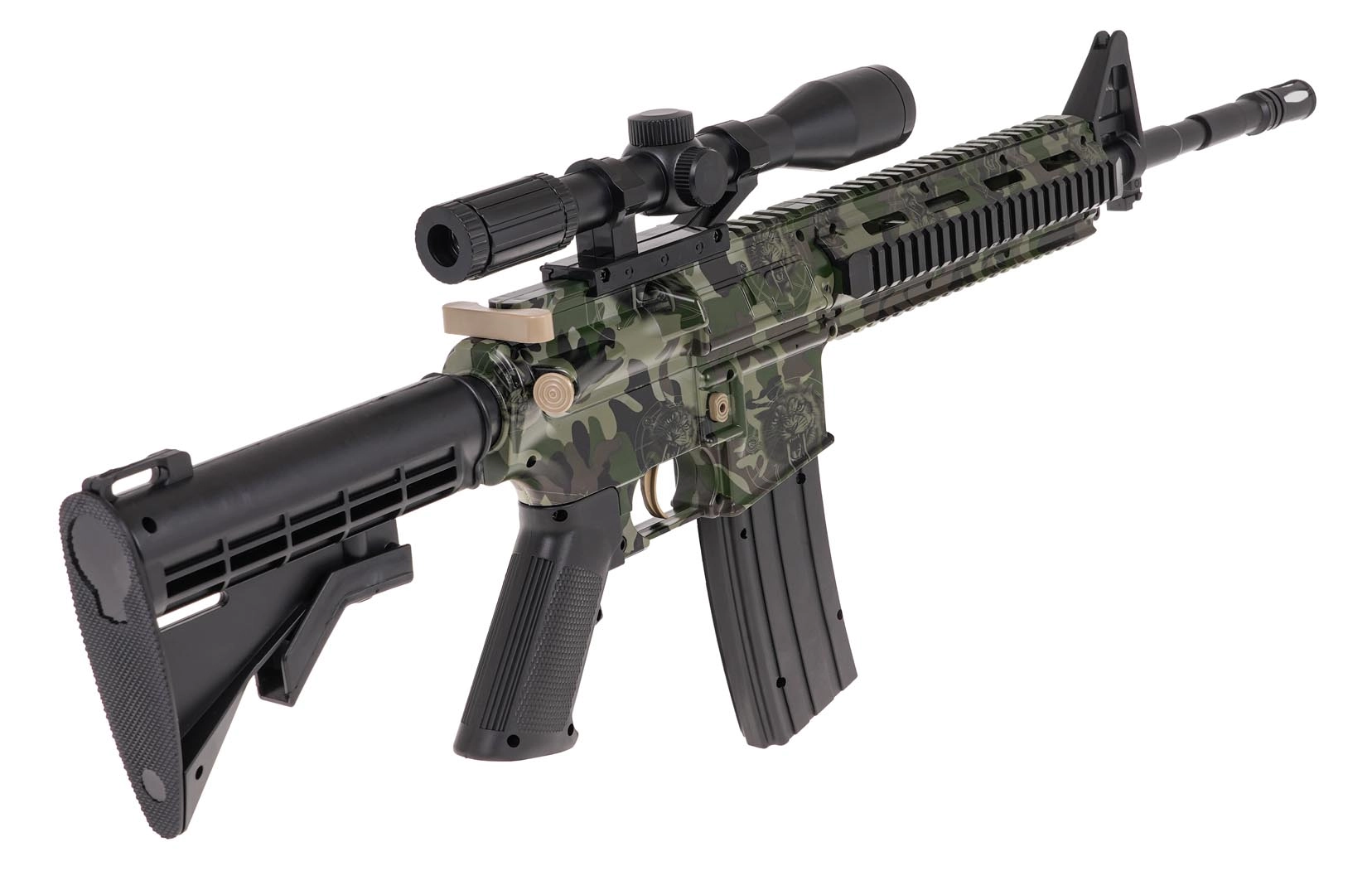 La gran carabina táctica M4 de bolitas de gel es ideal para juegos al aire libre y entrenamiento de puntería. Gracias a los dos modos de disparo, disfrutarás de acción rápida y de disparos individuales precisos. El visor óptico incluido, con aumento, se puede ajustar finamente mediante una rueda giratoria para mantener siempre el objetivo en la retícula.