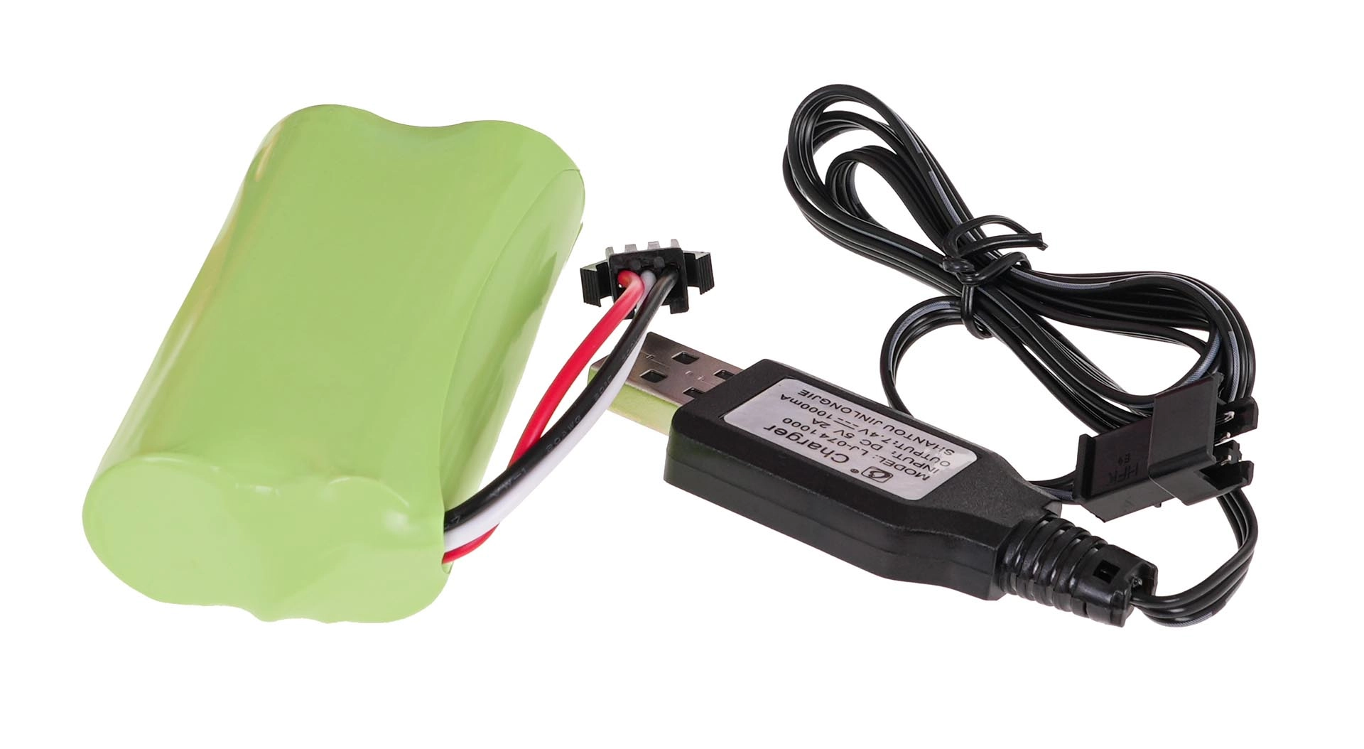 Incluye batería de 7,4 V y cable USB para cargar cómodamente desde una powerbank, PC o adaptador de pared.