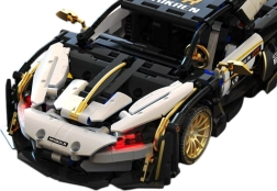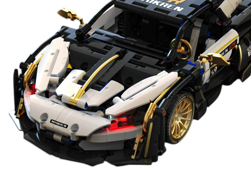 Pon a prueba tus habilidades con este juego de construcción de coche deportivo, que incluye 1242 bloques para ti o tus hijos a partir de 8 años. El modelo está fabricado en plástico ABS de alta calidad y es una réplica fiel del vehículo con elementos dorados realistas, como llantas brillantes.