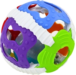 La principal atracción de la pelota es una bolita de plástico en su interior que reacciona al movimiento del niño. Al manipular la pelota emite sonidos y se ilumina, lo que capta la atención del bebé y estimula sus sentidos auditivo y visual. Estos efectos interactivos no solo entretienen, sino que también ayudan a desarrollar la percepción sensorial y la coordinación motora de los más pequeños.