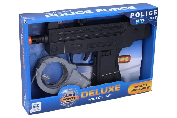 Con este subfusil policial con esposas, tu hijo se trasladará a un mundo de aventuras y acción. El set incluye un subfusil que emite efectos luminosos y sonoros, lo que garantiza una experiencia de juego realista. El paquete también incluye esposas que completan la experiencia del juego de policías.
