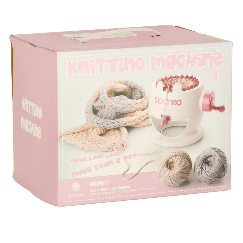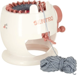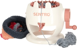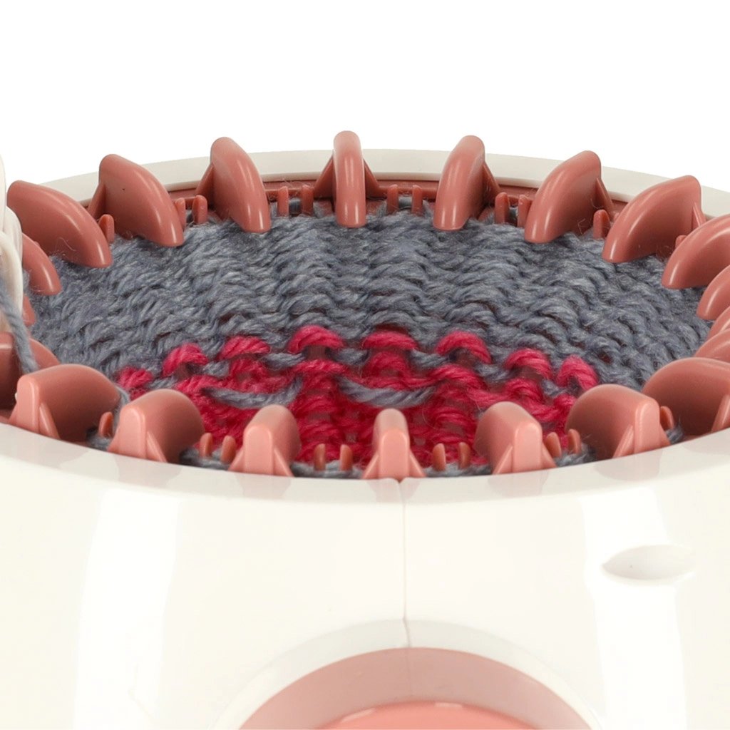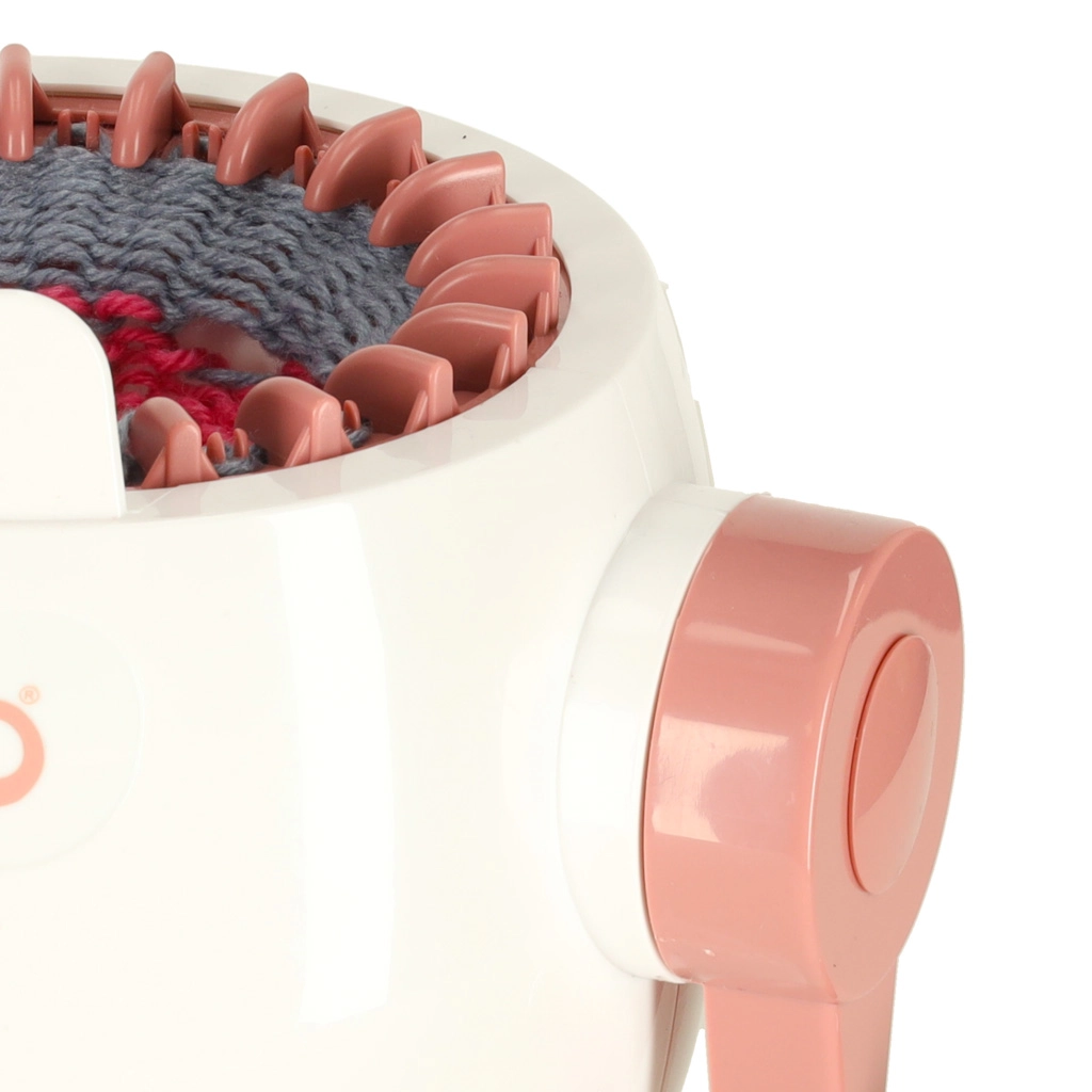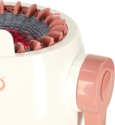 Esta máquina de tejer es una gran puerta de entrada al mundo de las manualidades. Niños y adultos desarrollan paciencia, concentración y motricidad fina, todo de forma divertida. Al girar la manivela, las agujas se mueven suavemente y puedes ver cómo el hilo se convierte en un tejido mullido.