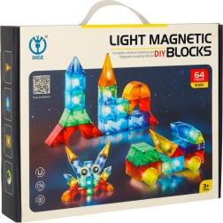 El set de construcción magnético con 64 piezas es una gran introducción al mundo de las construcciones espaciales. Las diferentes formas y colores despiertan la imaginación y los elementos luminosos aportan un efecto “wow” a cada obra. Los niños entrenan la coordinación mano-ojo, la precisión de los movimientos y el pensamiento lógico.