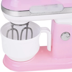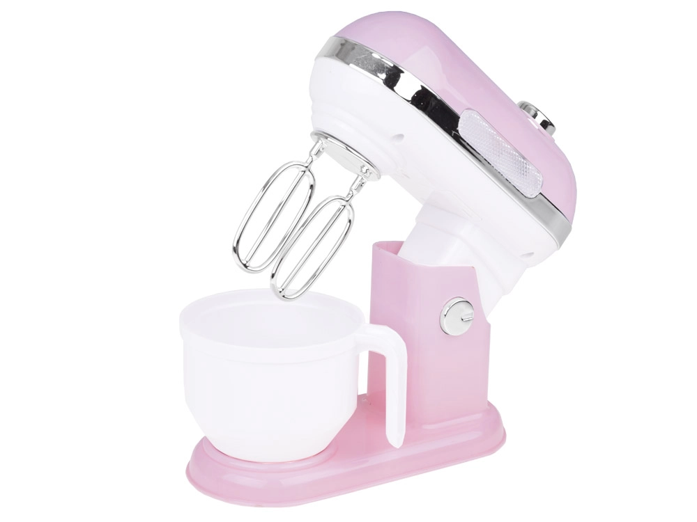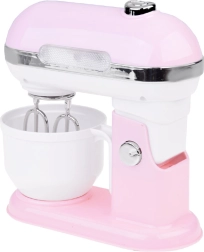Batidora planetaria equipada con botón ON/OFF que enciende un LED rojo al activarse. El brazo del robot se puede levantar para facilitar la extracción del bol. La batidora funciona con 2 pilas AAA.
