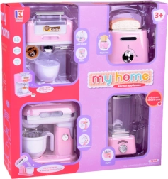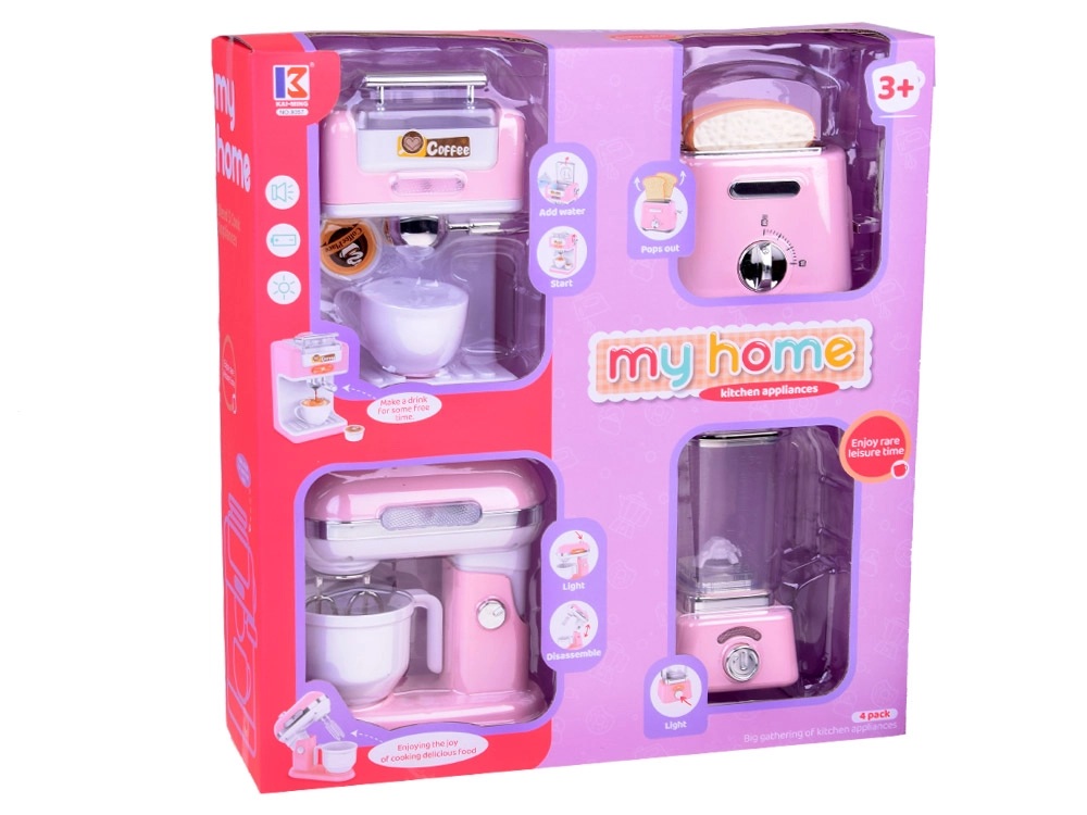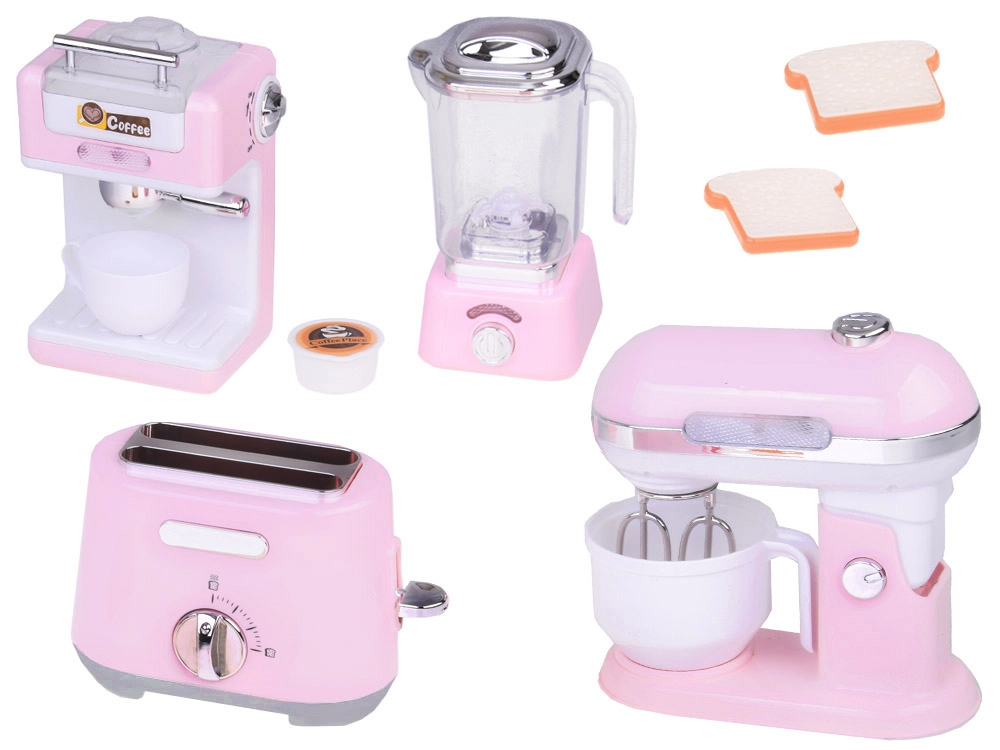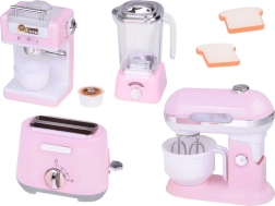 El set de pequeños electrodomésticos de cocina aporta a la cocina infantil elegancia y funcionalidad. Fabricado en plástico de alta calidad con detalles que imitan a la perfección los aparatos reales. El suave color rosa con detalles en blanco y cromado aporta a los juguetes encanto y estilo.
