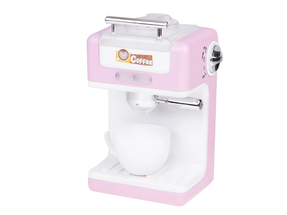 La cafetera está equipada con un selector giratorio que activa un efecto de sonido y enciende un LED rojo. Incluye portafiltro giratorio y un práctico espacio de almacenamiento. Funciona con 2 pilas AAA.