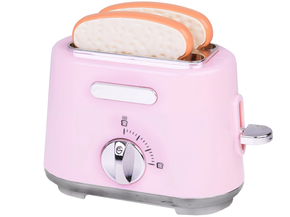 La tostadora tiene dos ranuras para rebanadas de pan. Al presionar el deslizador se oye un característico clic y las tostadas saltan al finalizar el tiempo. No requiere pilas.