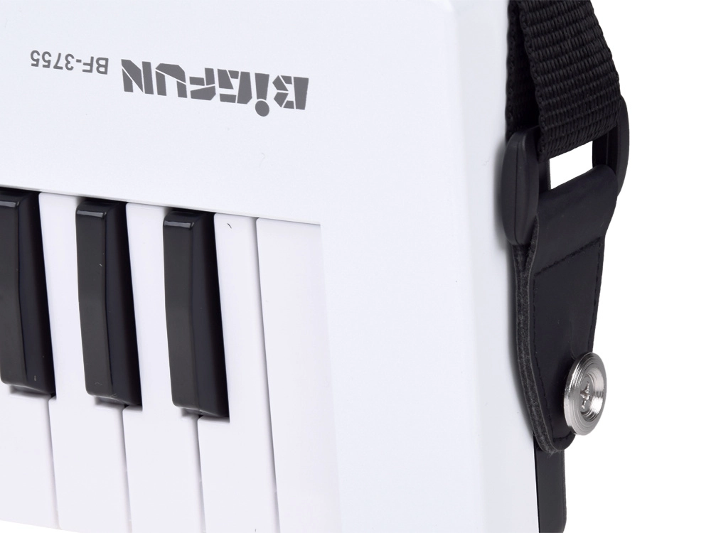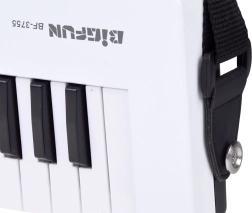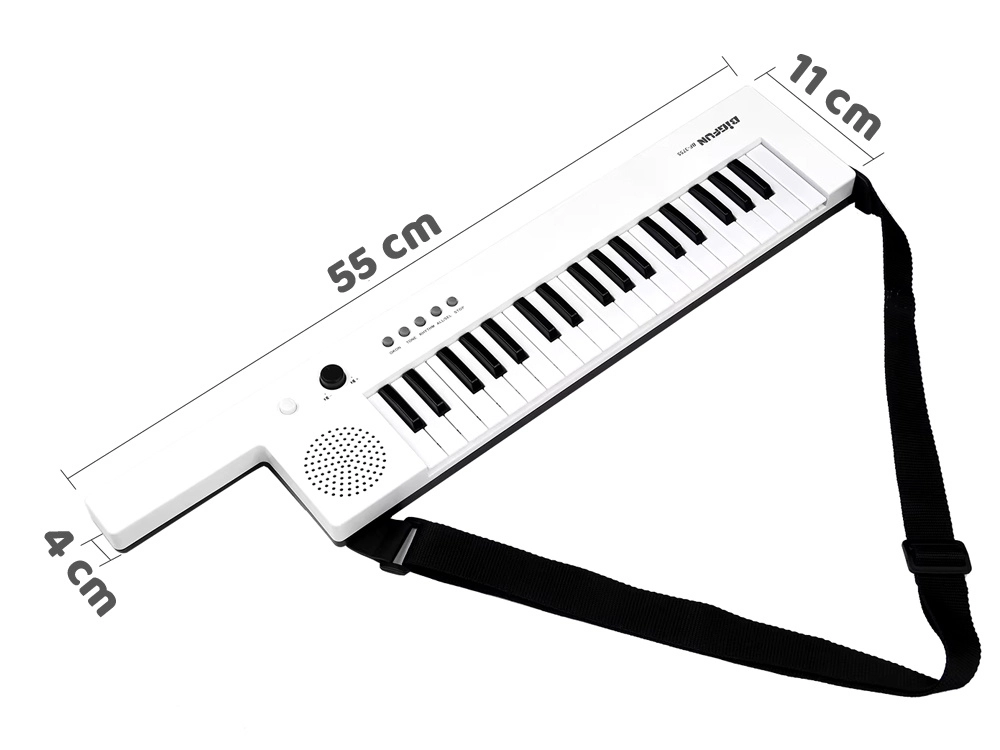 El ligero teclado infantil BIGFUN, fácil de manejar, ofrece 37 teclas, micrófono y una cómoda correa para el hombro para tocar de pie. Gracias a la carga por USB, 4 tonos, 4 ritmos y 10 canciones de demostración, es el inicio ideal en el mundo de la música, tanto en casa como en actuaciones.