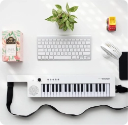 Desarrolla la creatividad infantil con un instrumento electrónico compacto listo para tocar en cualquier momento y lugar. El altavoz integrado, el micrófono incluido y la correa para el hombro convierten el teclado en un estiloso “keytar” para pequeños músicos. El manejo es intuitivo y anima a explorar sonidos y ritmos.
