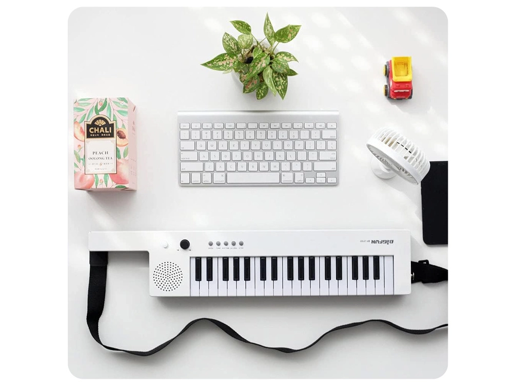 - Teclado con altavoz integrado, correa para el hombro, micrófono