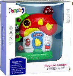 La adorable casita musical entretendrá a tu bebé durante horas. Ofrece sonidos de la naturaleza, voces de animalitos (monito, búho, conejito), melodías con doble pulsación y efectos de luz de acompañamiento. Los niños desarrollan la vista y el oído, aprenden a reconocer animales y descubren el mundo de forma divertida.