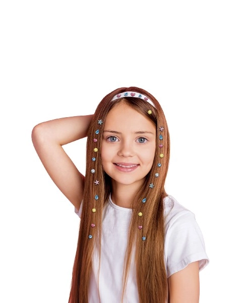 Divertido set creativo para pequeñas coquetas y niños creativos que incluye un práctico aplicador y 80 piedritas autoadhesivas. Con ellas podrás decorar fácilmente el cabello, pero también el diario, la funda del móvil o la cartera. Un regalo ideal para niños a partir de 5 años que fomenta la creatividad y la motricidad fina.