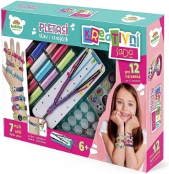 Este set creativo para hacer pulseras es la elección ideal para niños que aman las manualidades, los colores y los accesorios de moda. Gracias al telar claro y ordenado, tejer es fácil y divertido incluso para principiantes. Con las lanas y los accesorios, los niños crearán hasta 12 pulseras en diversos estilos y colores, desde rayas sencillas hasta patrones ingeniosos con pegatinas.