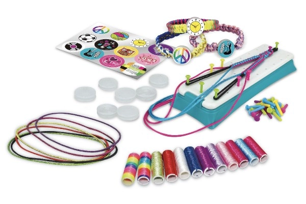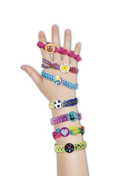 Gracias al completo contenido con lanas, botones de cierre y pegatinas, podrás realizar toda una colección de pulseras coloridas.