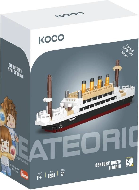 El set de construcción KOCO trae grandes historias en pequeños detalles. Permite a los niños practicar la motricidad fina de las manos al construir un increíble modelo del barco Titanic. El paquete incluye un manual ilustrado detallado que guía al niño paso a paso en el montaje del modelo.