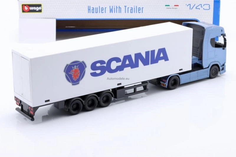 Modelo metálico de camión Bburago 1:43 Scania 770 S con remolque