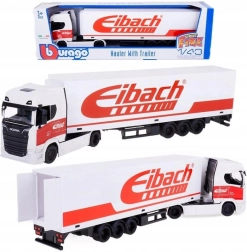 Modelo metálico de camión elaborado con realismo a escala 1:43 que ofrece un acabado detallado de la cabina Scania 770 S y un remolque largo. El modelo de la marca BBURAGO destaca por su construcción metálica de calidad, detalles finos y el atractivo diseño de Eibach sobre el remolque blanco. Una gran elección para coleccionistas o como regalo con estilo.
