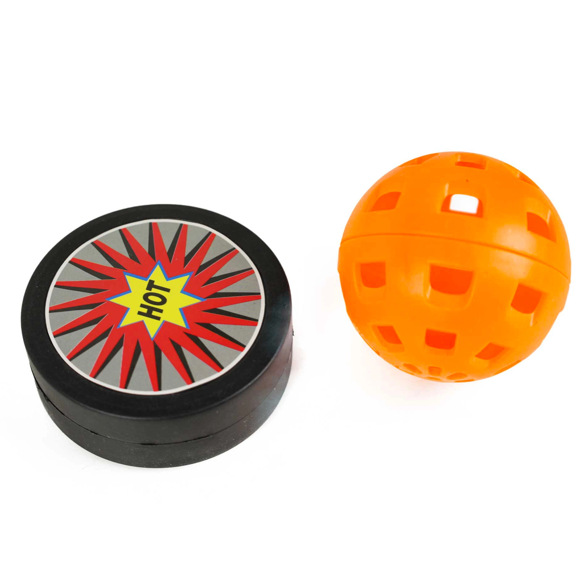 El paquete incluye todo lo necesario para jugar de inmediato: pelota, disco y dos palos.