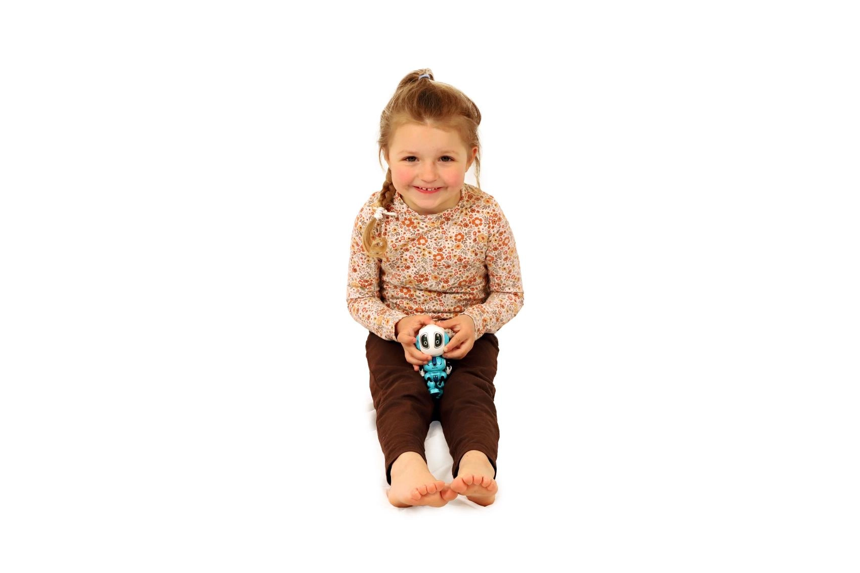 El robot tiene dimensiones compactas de 12 cm, por lo que cabe fácilmente en las manos de los niños y en la mochila. El manejo es intuitivo: encender – hablar – apagar todo con un único botón. Las pilas vienen incluidas, así que puedes empezar nada más desempaquetarlo.