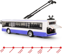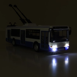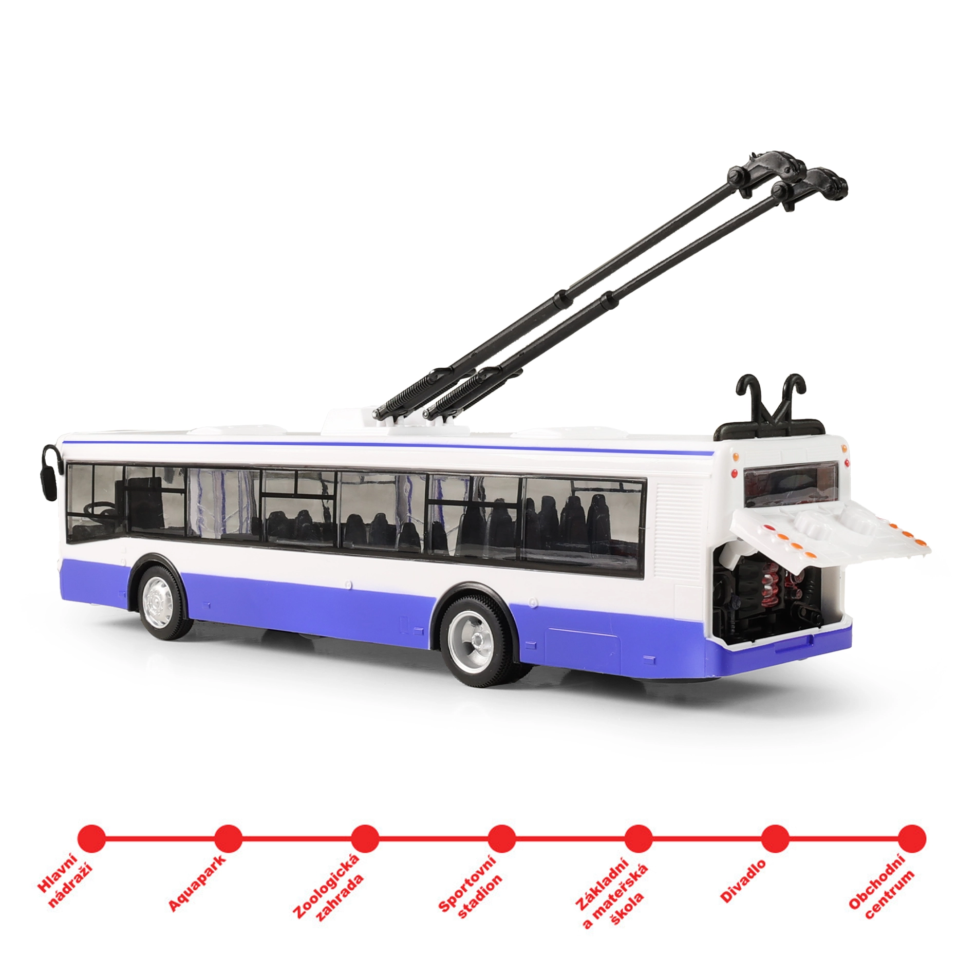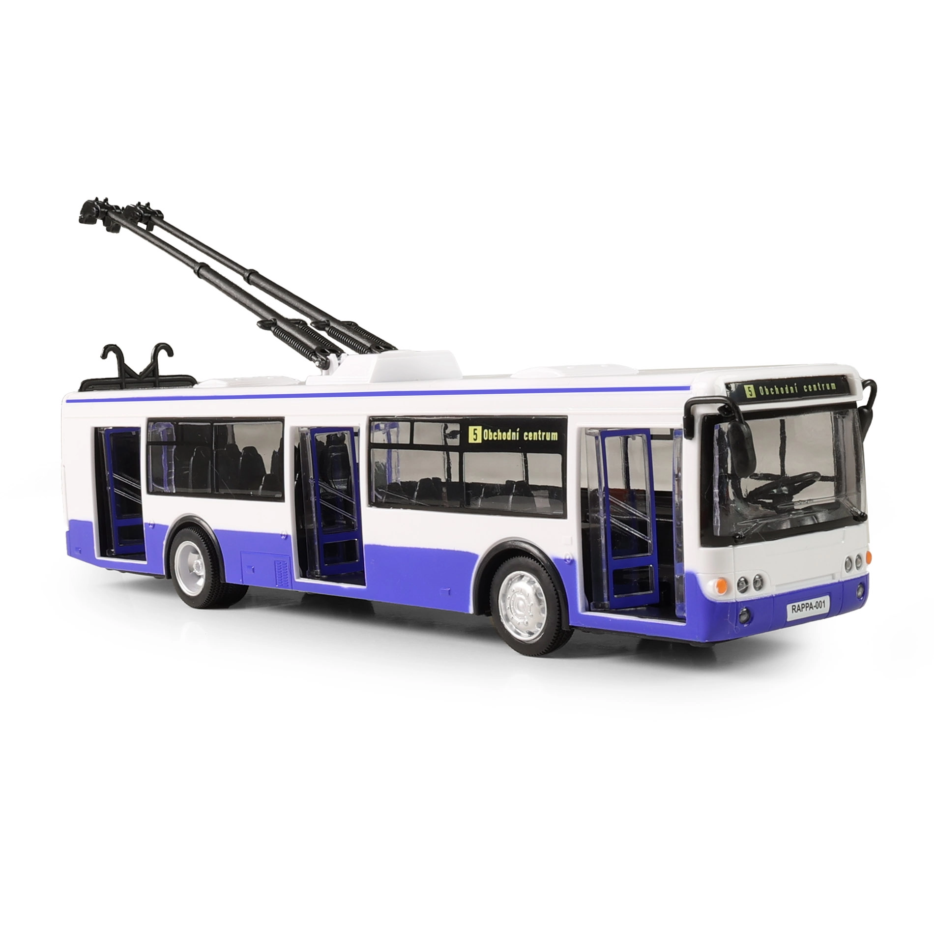 Descubre la diversión del transporte urbano con este trolebús azul que habla checo y reproduce anuncios de paradas al abrir las puertas. Sus detalles realistas a escala 1:43 y la longitud de 28 cm lo convierten en un gran modelo y en un juguete resistente para el juego diario.