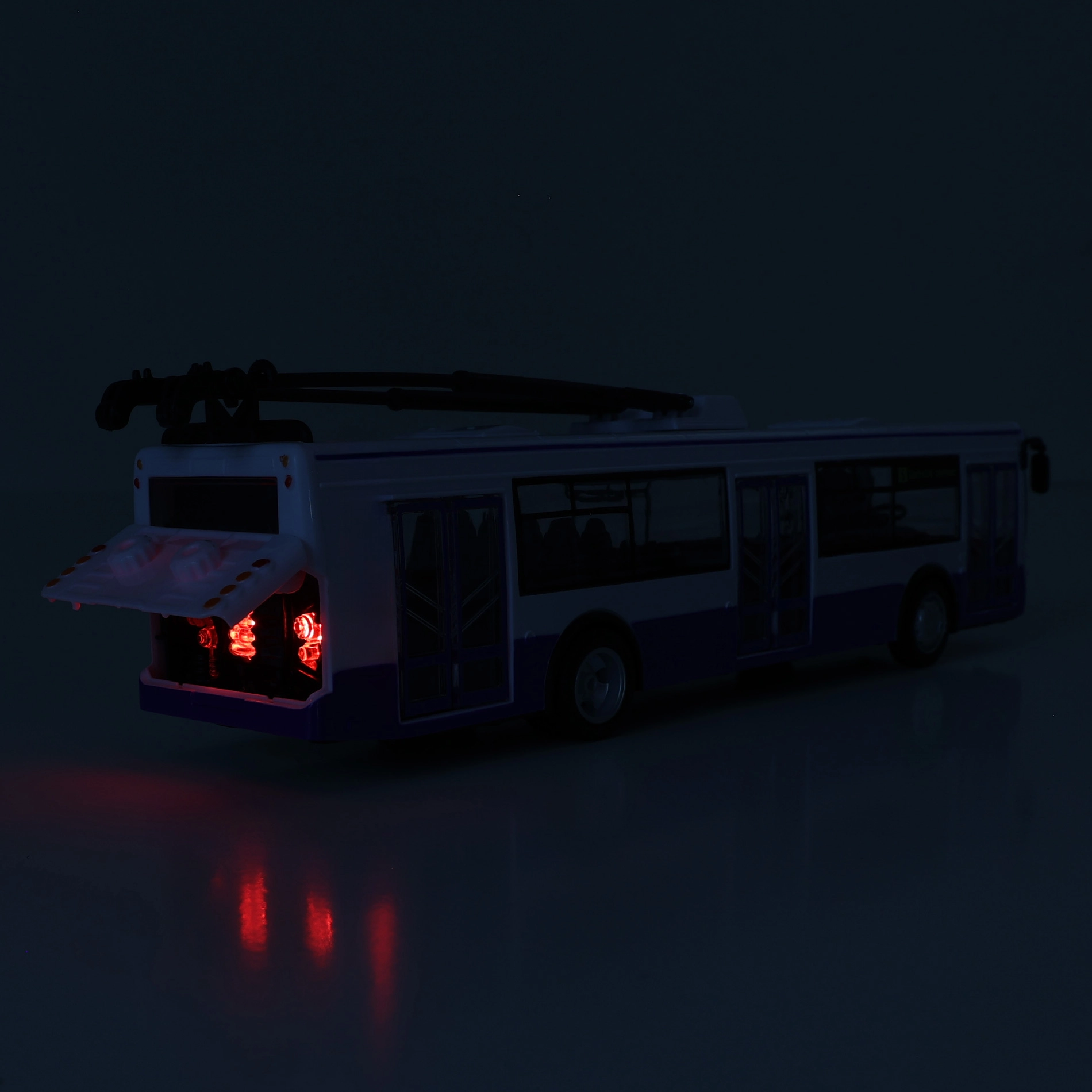 El manejo es sencillo y divertido: abre las puertas manualmente, ciérralas pulsando el botón del techo y observa cómo parpadean las luces delanteras al cerrarse. El trolebús funciona con mecanismo de retroceso, por lo que se pone en marcha fácilmente sobre el suelo. Las pilas LR44/AG13 ya vienen incluidas, así que podrás jugar nada más desempaquetarlo.