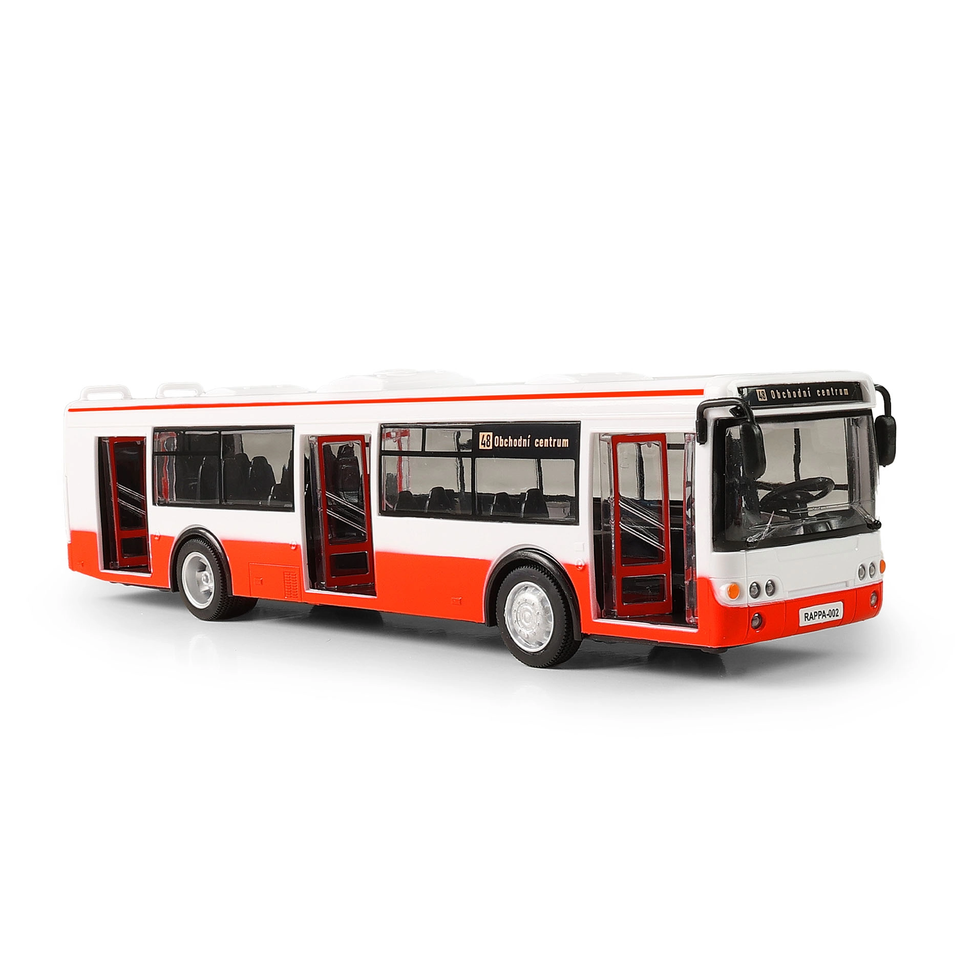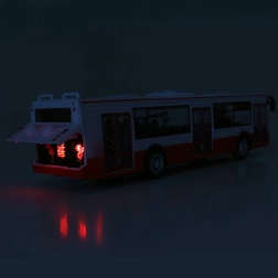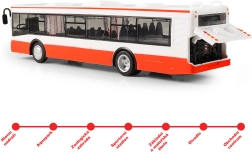 Este autobús de plástico detallado de 28 cm animará cualquier viaje infantil. Al abrir las puertas suenan anuncios de paradas en checo y al cerrar además parpadean las luces delanteras. Gracias al mecanismo de retroceso, el autobús se pone en marcha solo y aporta mucha diversión llena de acción.