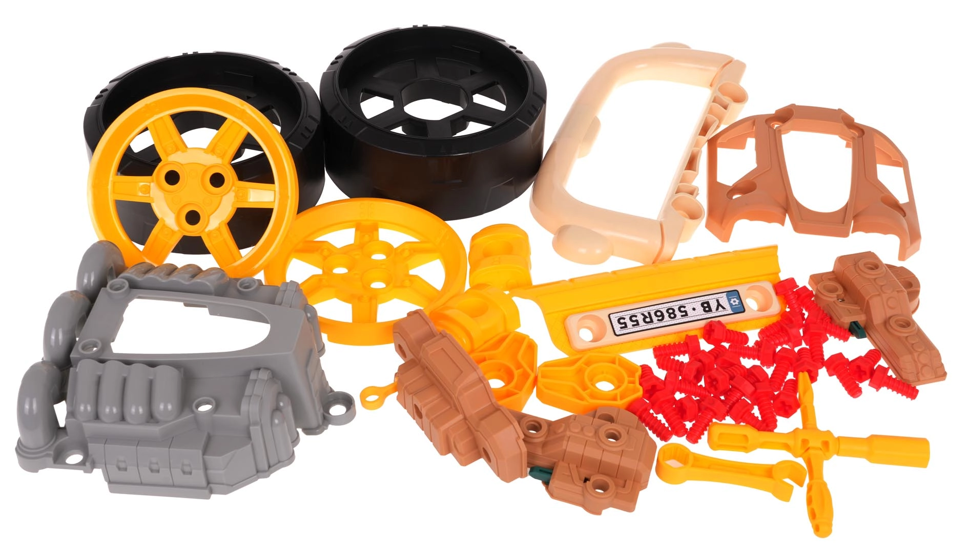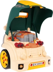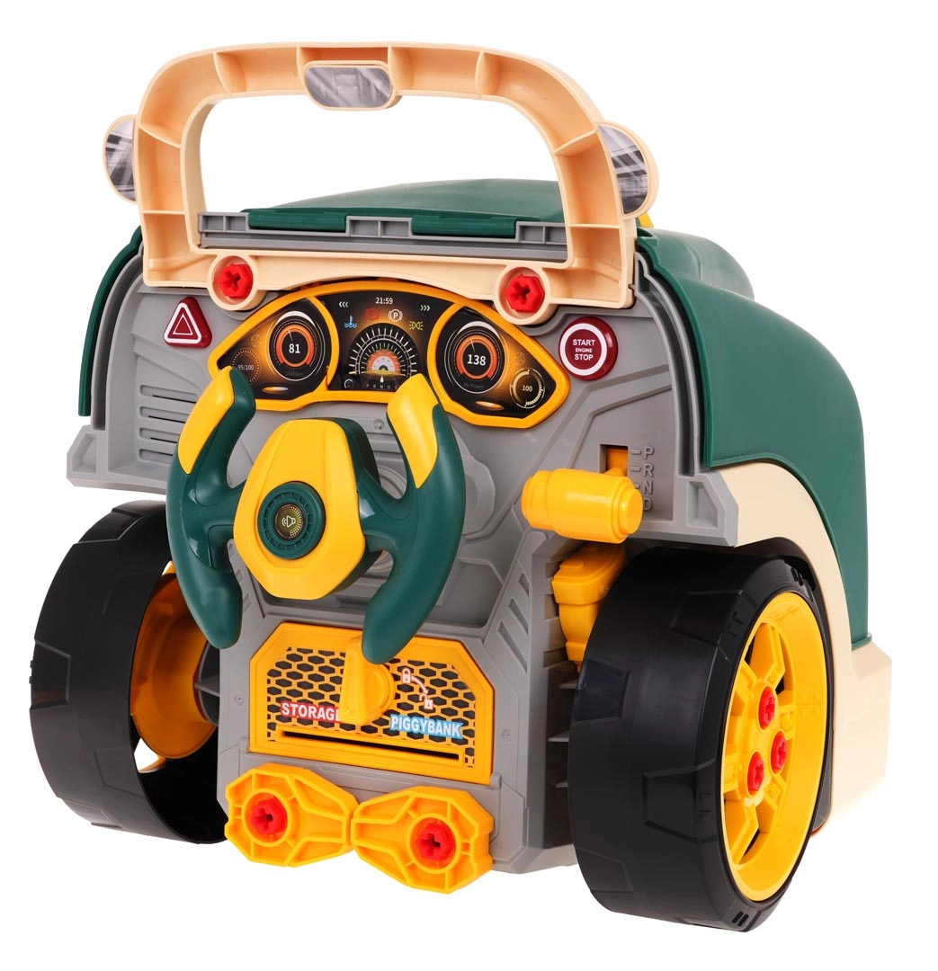 Incluye un set de herramientas y numerosos tornillos para que los niños puedan montar y desmontar el motor y las ruedas una y otra vez. El juego fomenta las habilidades manuales, la creatividad y el pensamiento técnico. Alimentación: 3× AA 1,5 V (no incluidas).