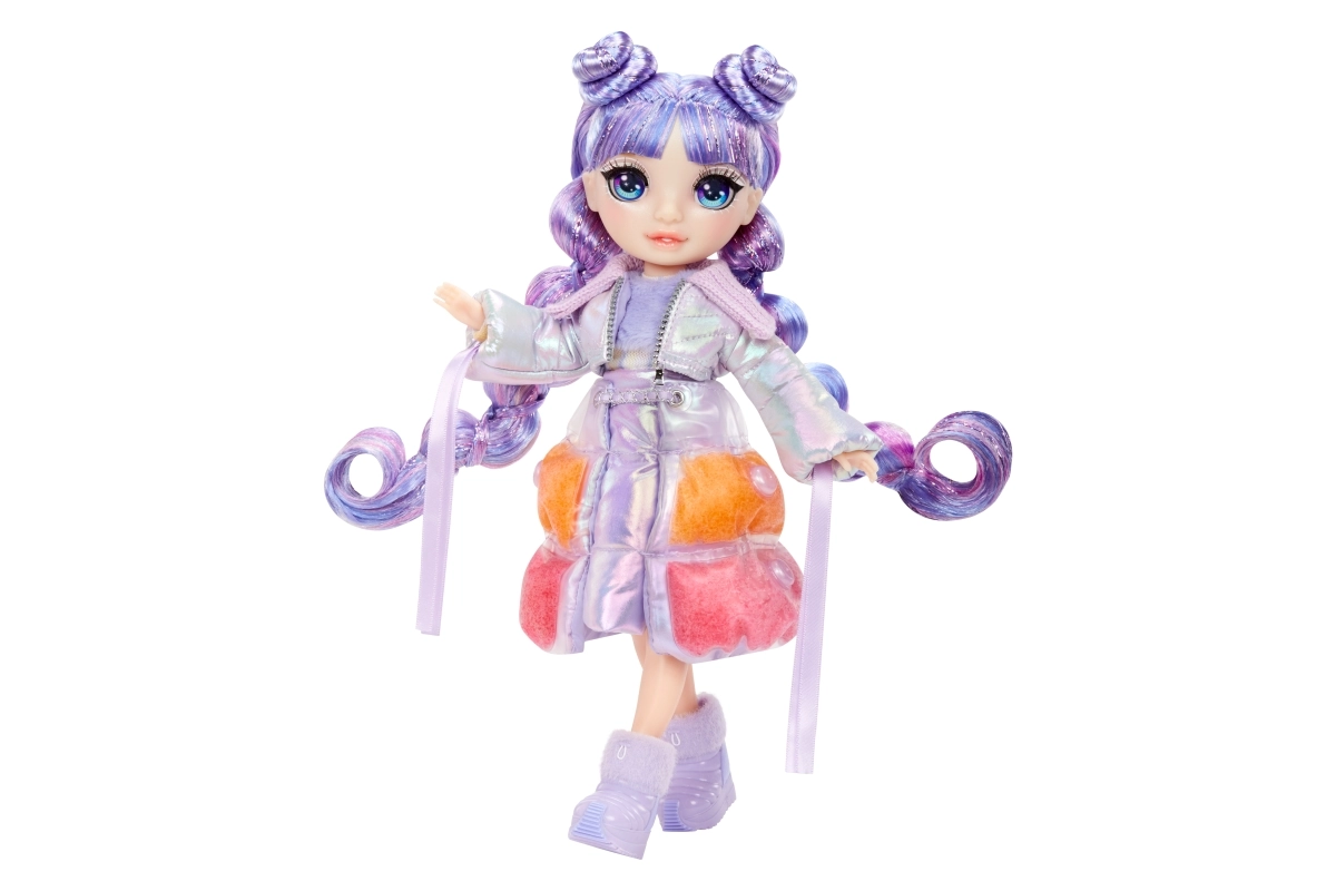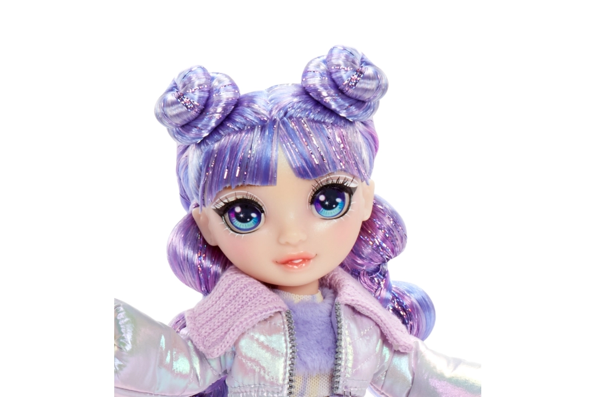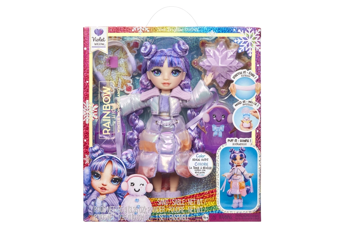 Descubre el mundo invernal de RAINBOW HIGH con la muñeca Violet Willow de la colección Winter Wonderland. Añade agua a la “nieve” incluida y observa la impresionante transformación del outfit: el material se expande, hace espuma y revela colores y texturas divertidas. Puedes repetir el efecto una y otra vez, así que el estilismo nunca cansa.