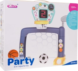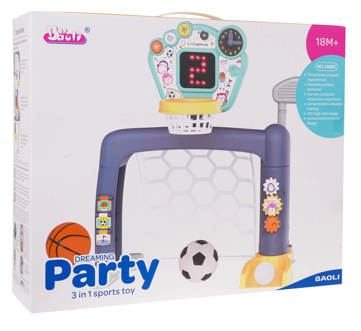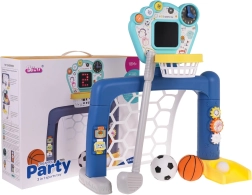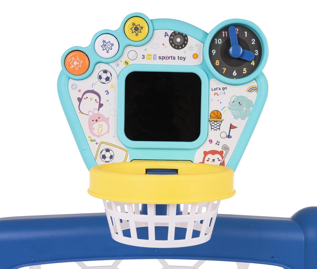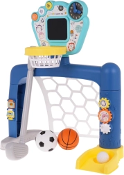 Este set deportivo multifuncional combina el movimiento activo con una interactividad inteligente. Los niños pueden elegir entre fútbol, baloncesto y golf, mientras que el panel con luces y sonidos les acompaña en el juego y muestra los resultados. Ideal para el desarrollo de la motricidad gruesa y fina, la coordinación mano-ojo y la percepción del tiempo gracias a las manecillas móviles del reloj.