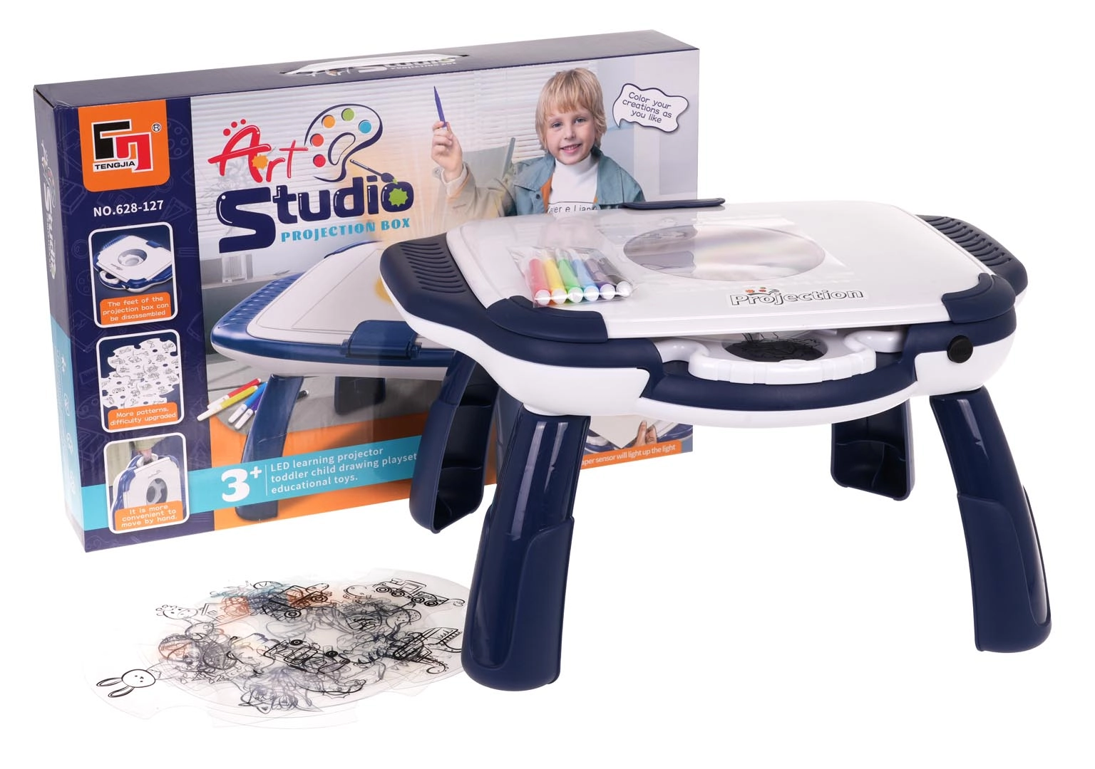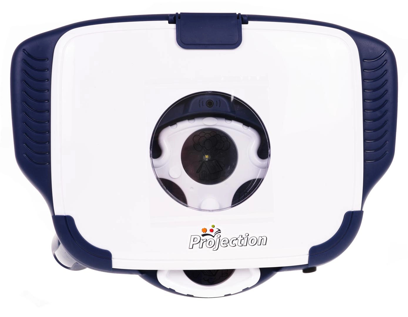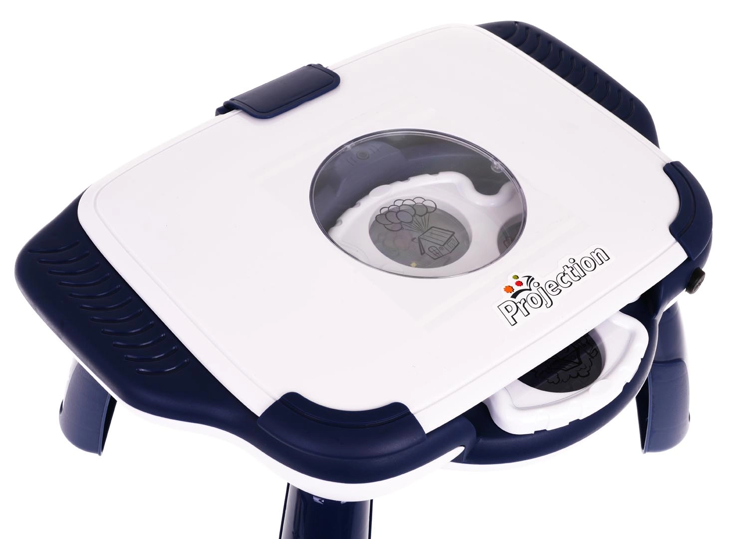 La mesa de proyección para dibujar es una excelente manera de facilitar a los niños sus primeros pasos en el mundo de la creación. Gracias a 12 discos con 4 diapositivas en cada uno, pueden elegir entre decenas de imágenes: desde animales y dinosaurios hasta vehículos, casas y plantas. La imagen se proyecta directamente sobre la superficie de dibujo y el niño puede calcarla fácilmente.