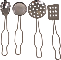 Incluye también pinzas, cucharón, espátula y cuchara perforada: todo lo que los niños necesitan para cocinar y servir.