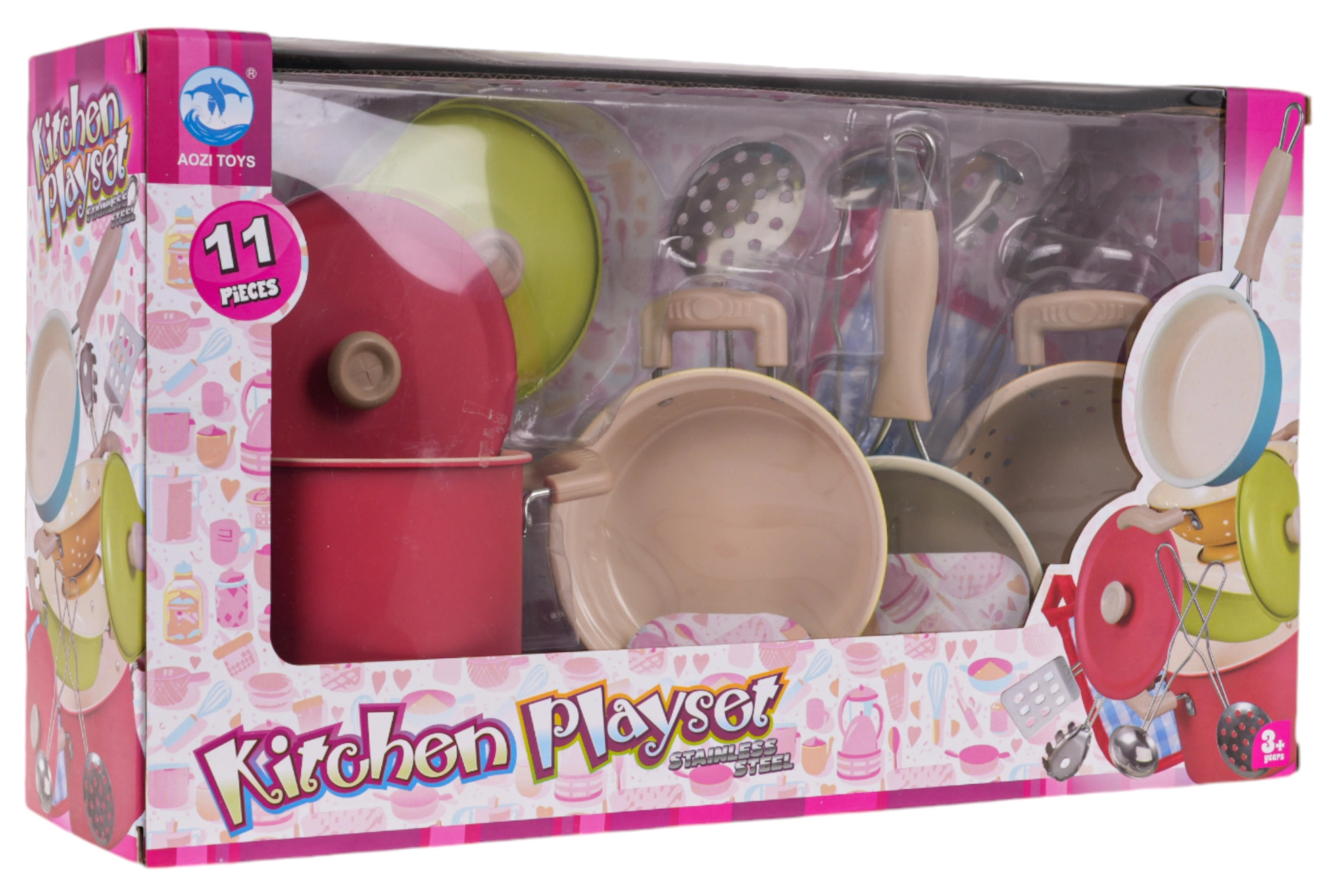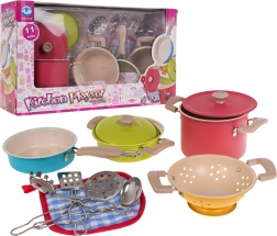 Desarrolla la imaginación infantil con un set metálico de 11 piezas de utensilios y herramientas para pequeños chefs a partir de 3 años. El conjunto incluye ollas con tapas, sartén, colador y utensilios, y destaca por sus colores vivos, su fabricación metálica resistente y su equipamiento completo para un juego de cocina realista.