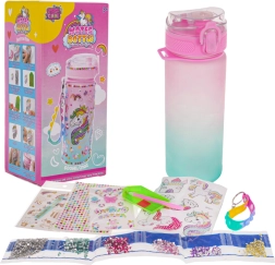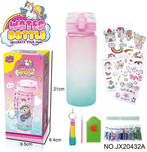 Desarrolla la imaginación infantil con esta adorable botella de agua con motivo de unicornio y un completo set de accesorios. Los niños pueden decorar la botella con pegatinas y gemas brillantes. La botella está hecha de materiales seguros, no tóxicos y sin BPA, tiene apertura fácil y es hermética. Ideal para niños a partir de 3 años – diversión, creatividad e hidratación en uno.