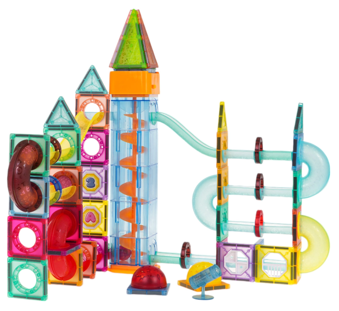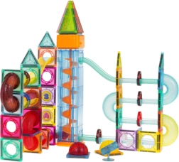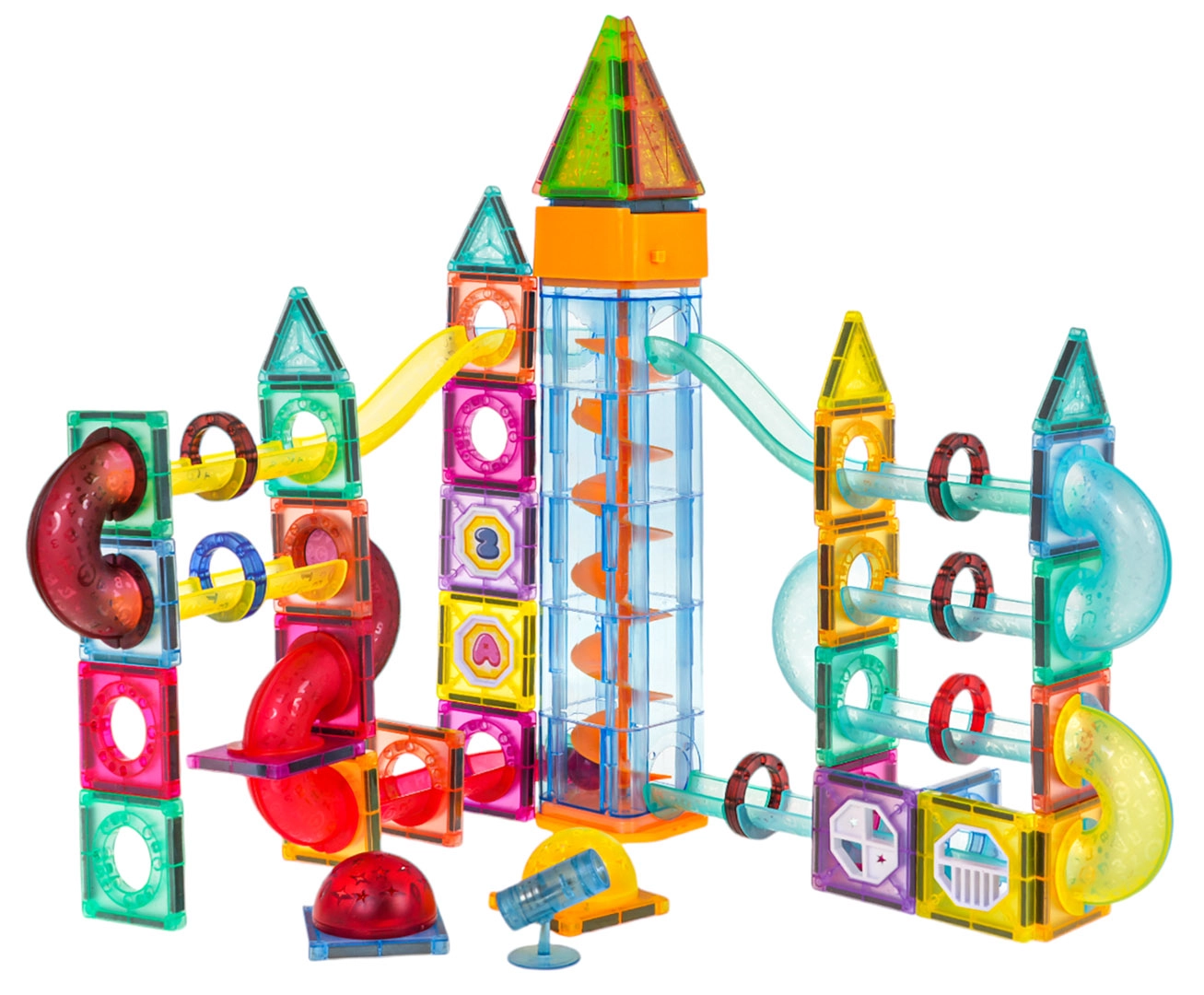 Los tubos transparentes, las formas magnéticas y los elementos únicos permiten a los niños diseñar recorridos originales que estimulan la imaginación y el pensamiento lógico.