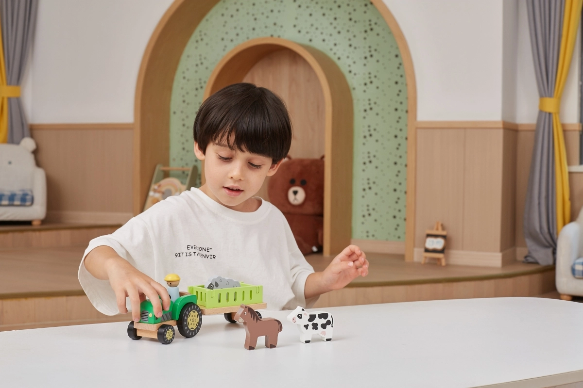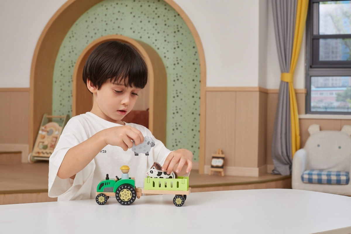 El tractor de madera con animalitos de Viga Toys es perfecto para niños que disfrutan creando historias sobre la vida en la granja. Los laterales del remolque pueden transformarse en una valla de granja, lo que amplía aún más las posibilidades de juego. Este set es adecuado tanto para jugar en grupo como de manera individual.