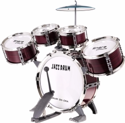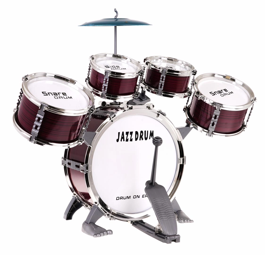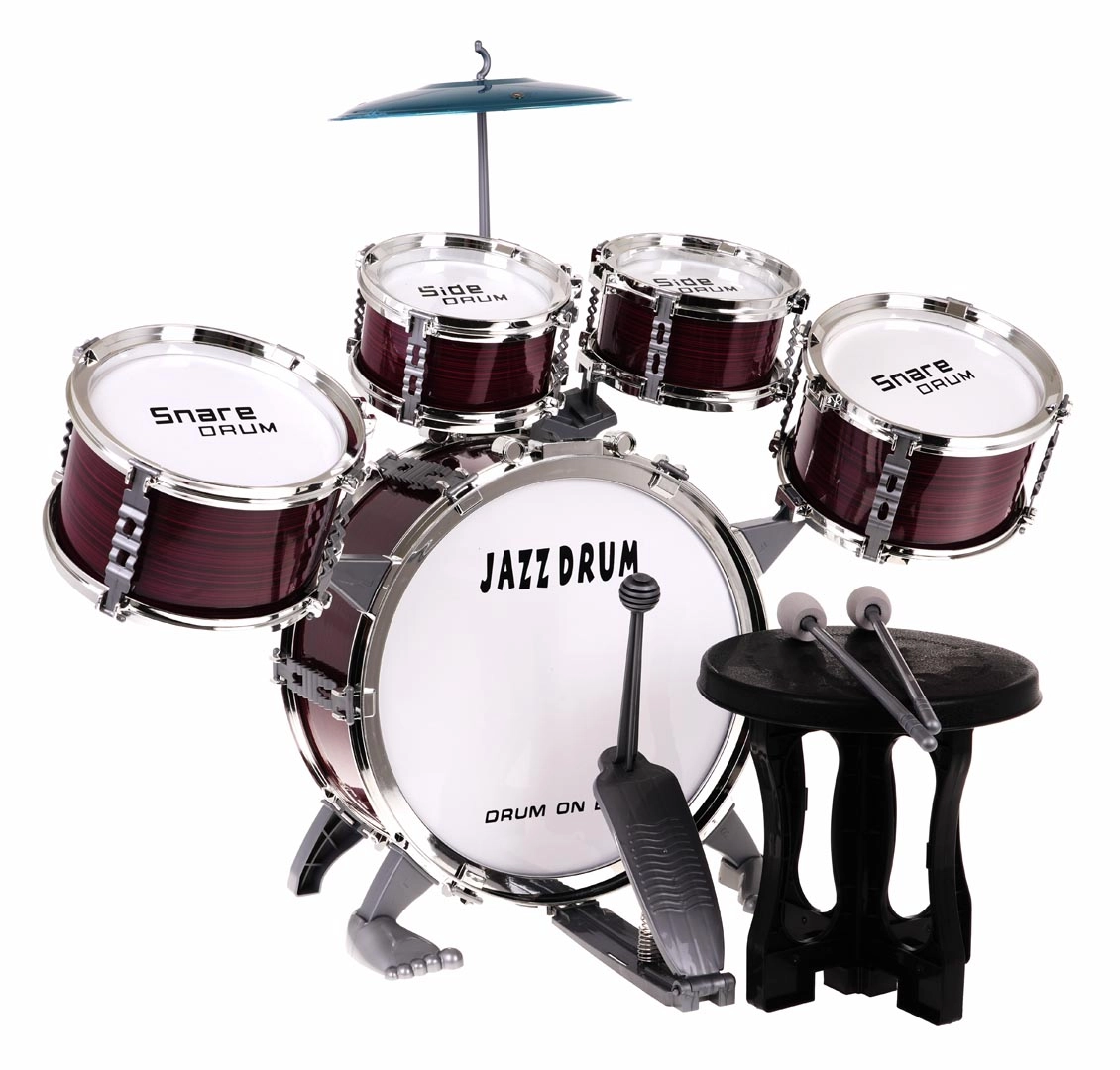 Incluye todos los componentes necesarios: cinco tambores, platillo, baquetas y taburete.