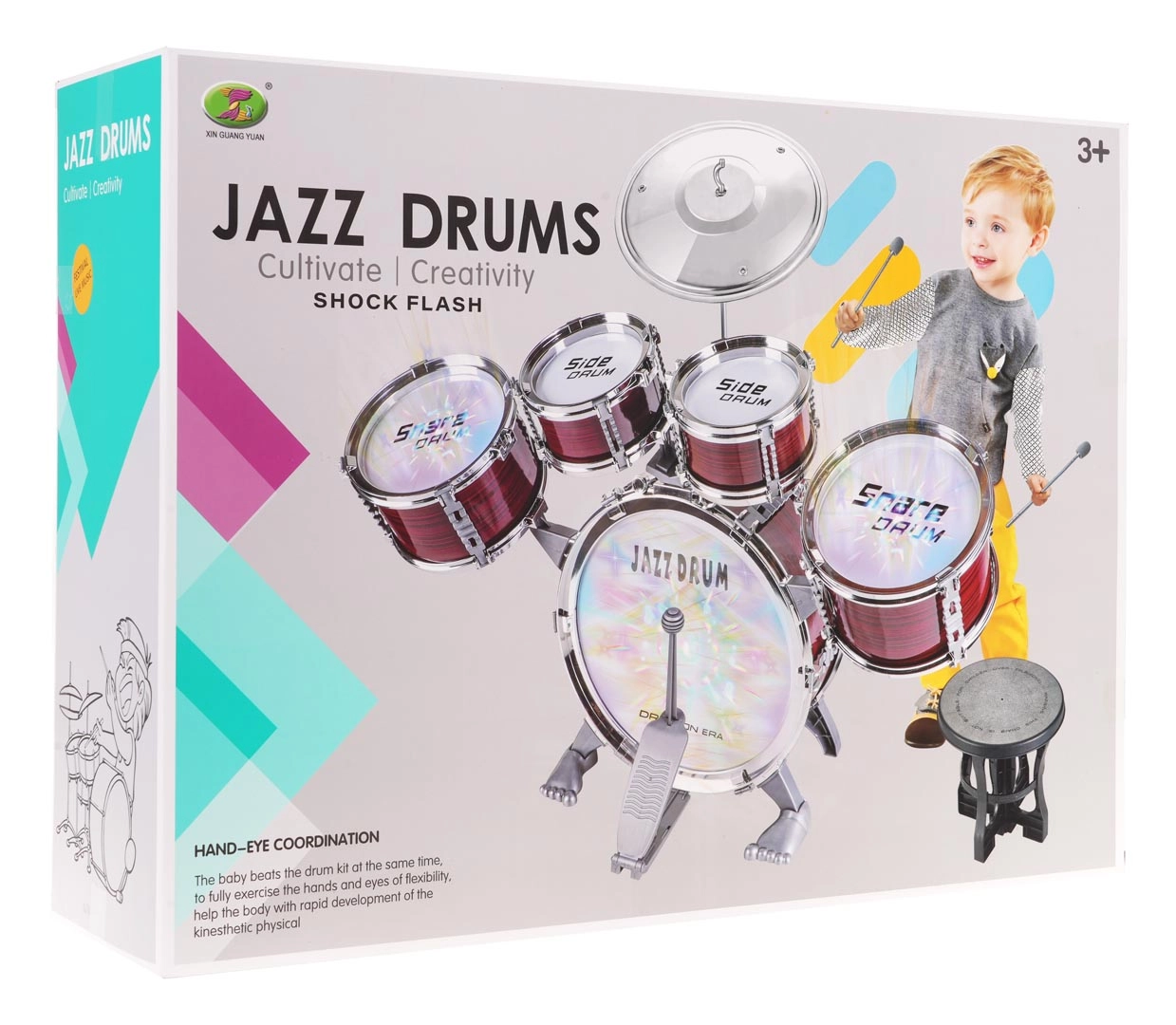 Gracias a su construcción robusta y al uso de materiales seguros, esta batería no solo es divertida, sino también resistente. Los tambores iluminados añaden un efecto adicional muy atractivo que cautivará a cualquier niño.