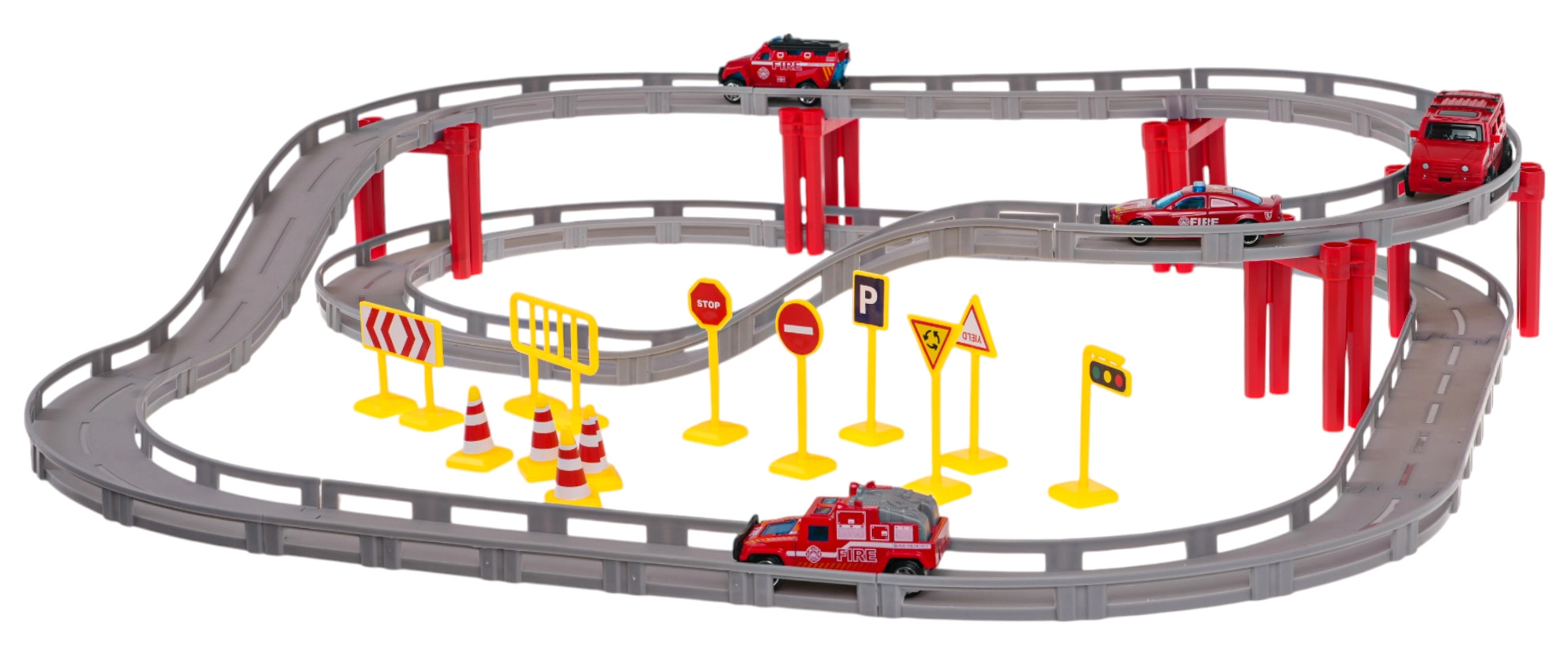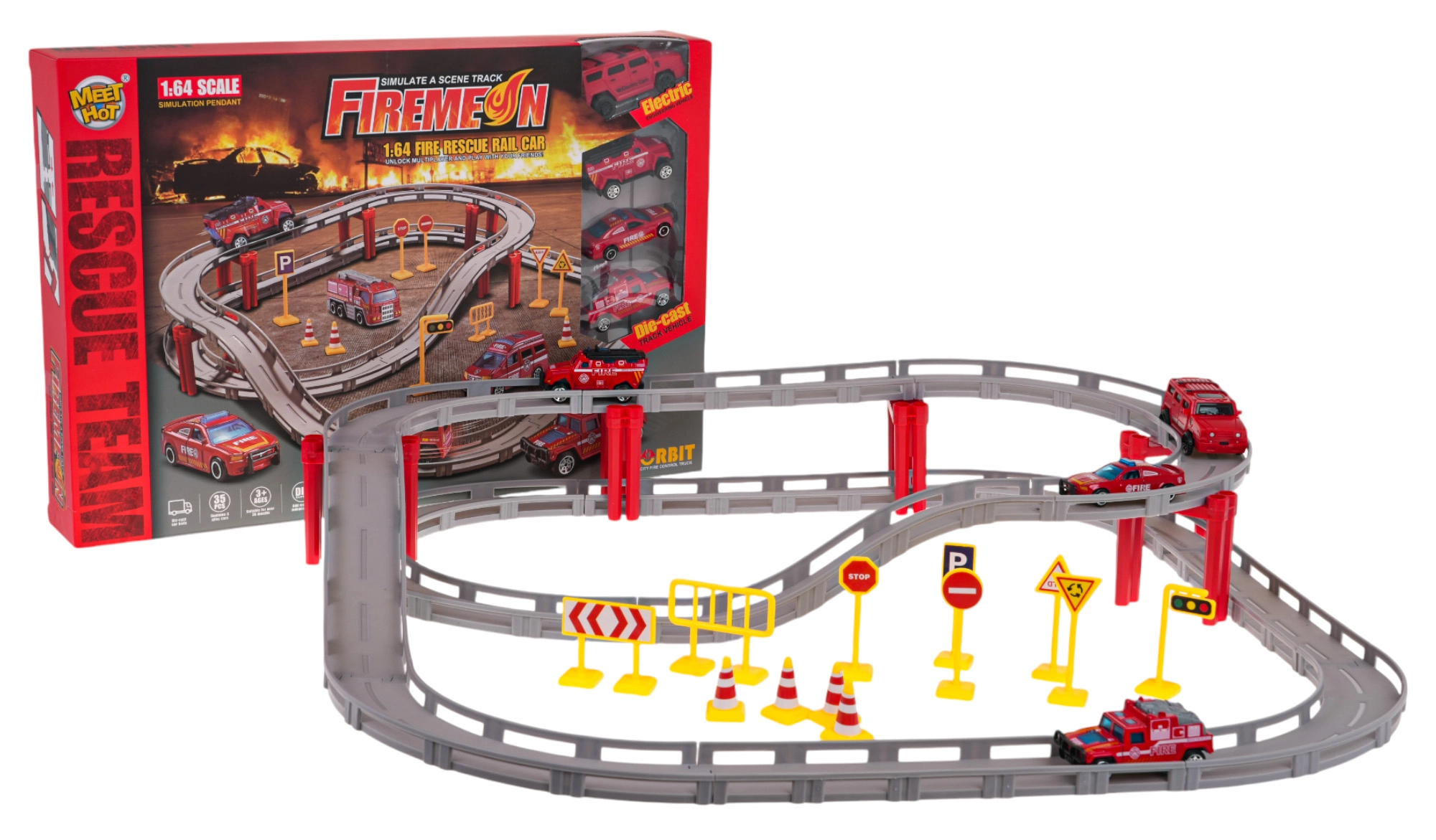Pista de carreras versión Bomberos es el juguete perfecto para pequeños aventureros. El set incluye numerosos elementos para simular una intervención de bomberos y la emoción de una conducción dinámica, incluyendo cuatro vehículos de bomberos.
