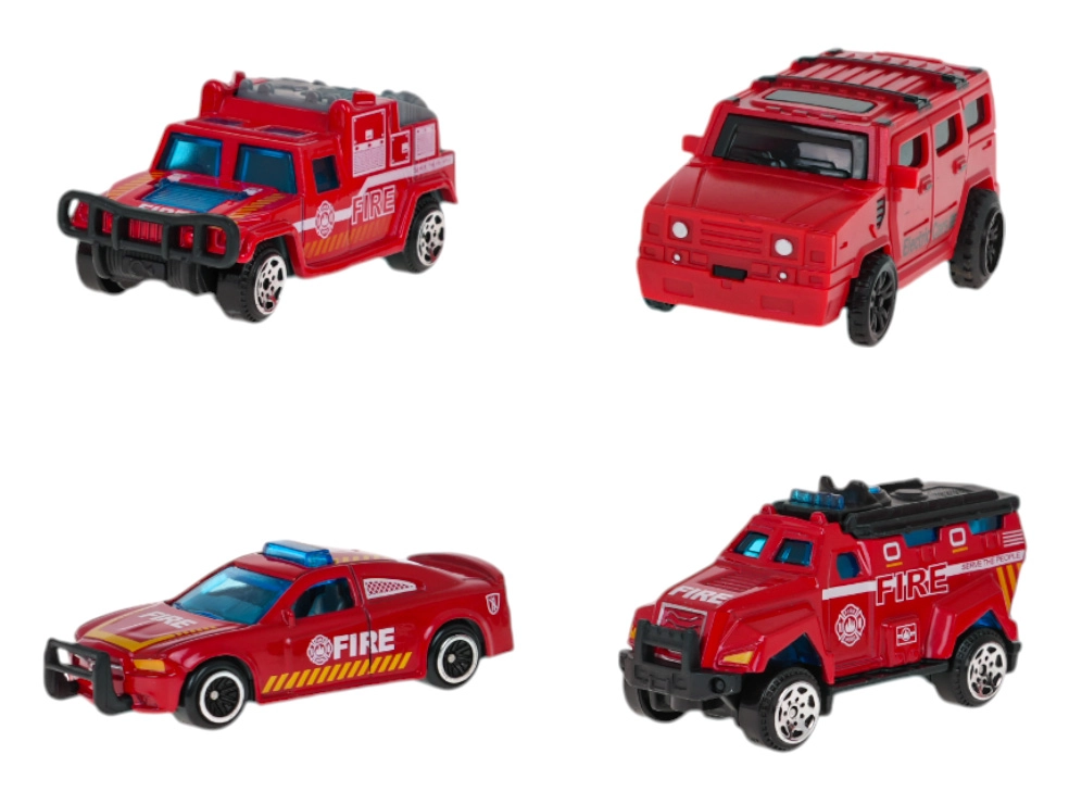 - Incluye 4 vehículos de bomberos, uno de ellos motorizado con una pila 1 x AA 1,5V (no incluida).