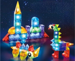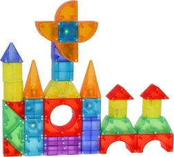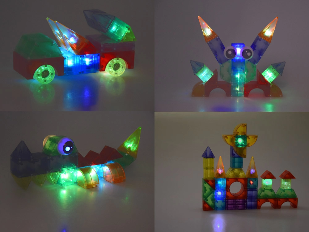 Este colorido set de bloques magnéticos permite a los niños construir coches, torres, animales y estructuras fantásticas. Las piezas de plástico resistente y seguro se mantienen firmes gracias a los imanes integrados y los módulos de luz aportan un aspecto llamativo a cada creación. Se incluyen guías con diferentes niveles de dificultad, para que los niños desarrollen sus habilidades paso a paso.