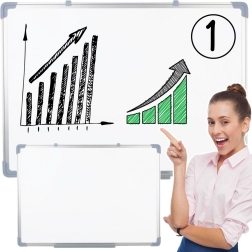 Universal pizarra magnética borrable en seco de 90 × 60 cm con elegante marco de aluminio, ideal para oficina, escuela y despacho en casa. Ofrece escritura y borrado fáciles, posibilidad de fijar documentos con imanes y rápida organización de las tareas diarias.