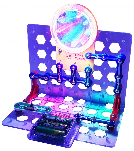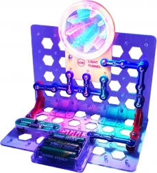 Experimenta con ilusiones ópticas y módulos de luz giratorios. Los niños comprenderán cómo funcionan la luz, los colores y la rotación en la práctica: de forma divertida y segura.