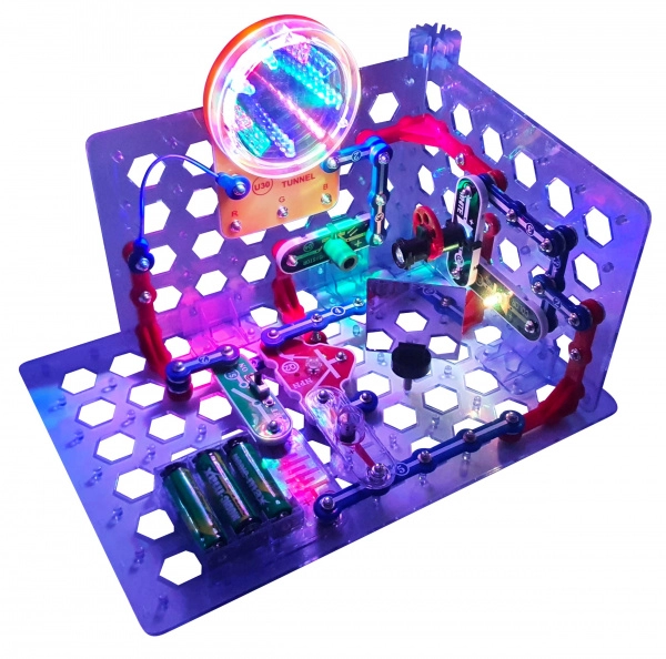El set Boffin II 3D lleva los clásicos circuitos de encaje a otra dimensión. Con cinco rejillas base (1 grande + 4 pequeñas) construirás proyectos como torre telegráfica, túnel de luz, sirena, fuegos artificiales o brillo 3D. Cada proyecto está claramente descrito en el manual completo, por lo que podrás verificar fácilmente que todo funciona.