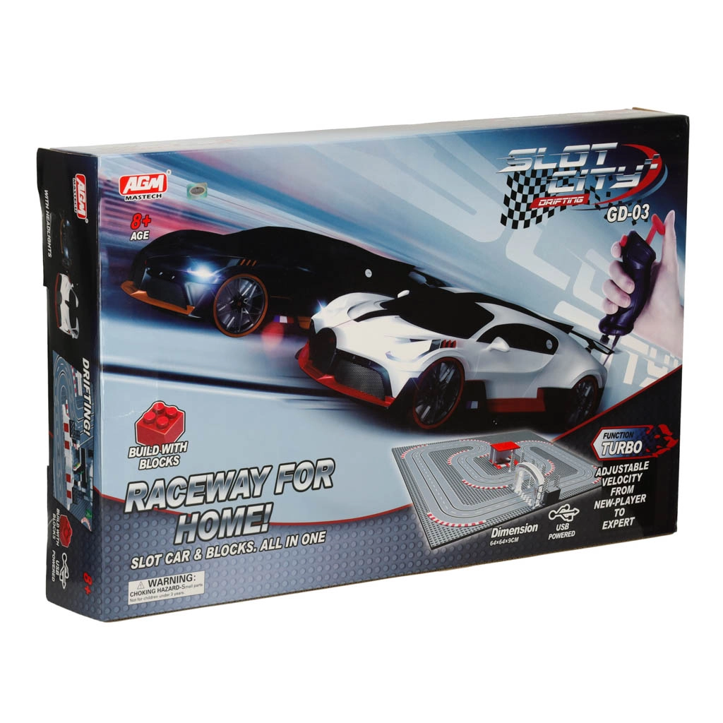 La pista requiere conexión a la red eléctrica, lo que garantiza un juego fluido y una alegría ilimitada en cada vuelta. Es el juguete ideal para jugar en compañía de amigos o en familia.