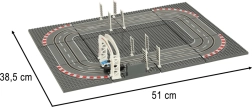 La pista favorece el desarrollo de habilidades manuales y la coordinación mano-ojo. Además, el control de la velocidad mejora los reflejos, especialmente cuando el coche se aproxima a las curvas, lo que exige una reacción rápida. Gracias a la conexión a una fuente eléctrica, el juguete ofrece diversión duradera que brinda a los niños fluidez en la acción y una alegría ilimitada al completar cada vuelta.