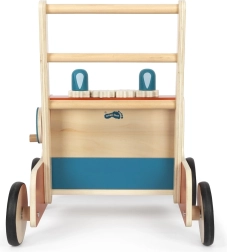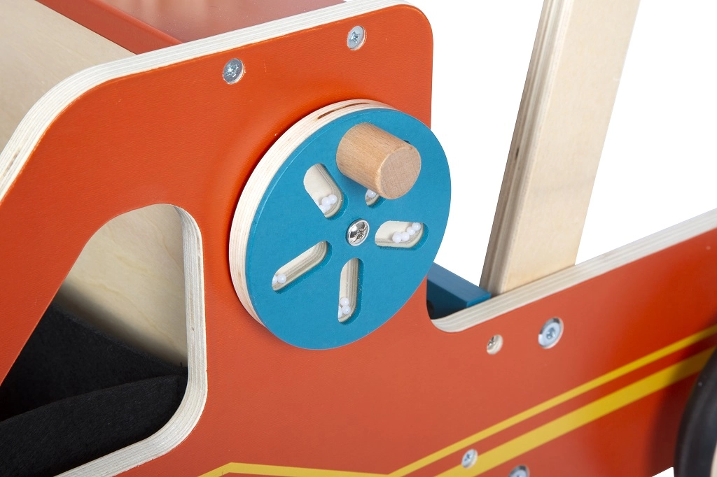 La sólida estructura de madera y el sistema de frenado integrado dan a los niños seguridad al caminar e incluso a mayor velocidad. Cuatro ruedas anchas garantizan estabilidad en diferentes superficies.