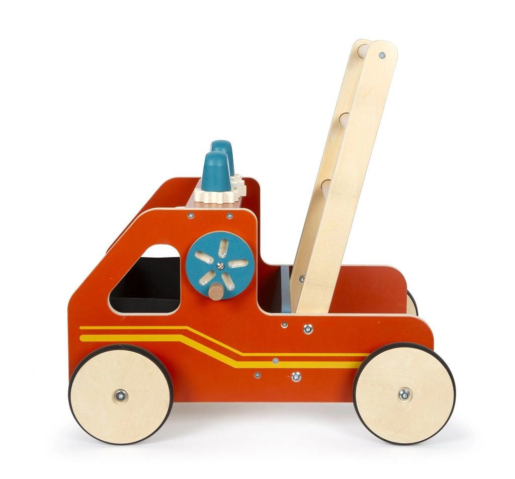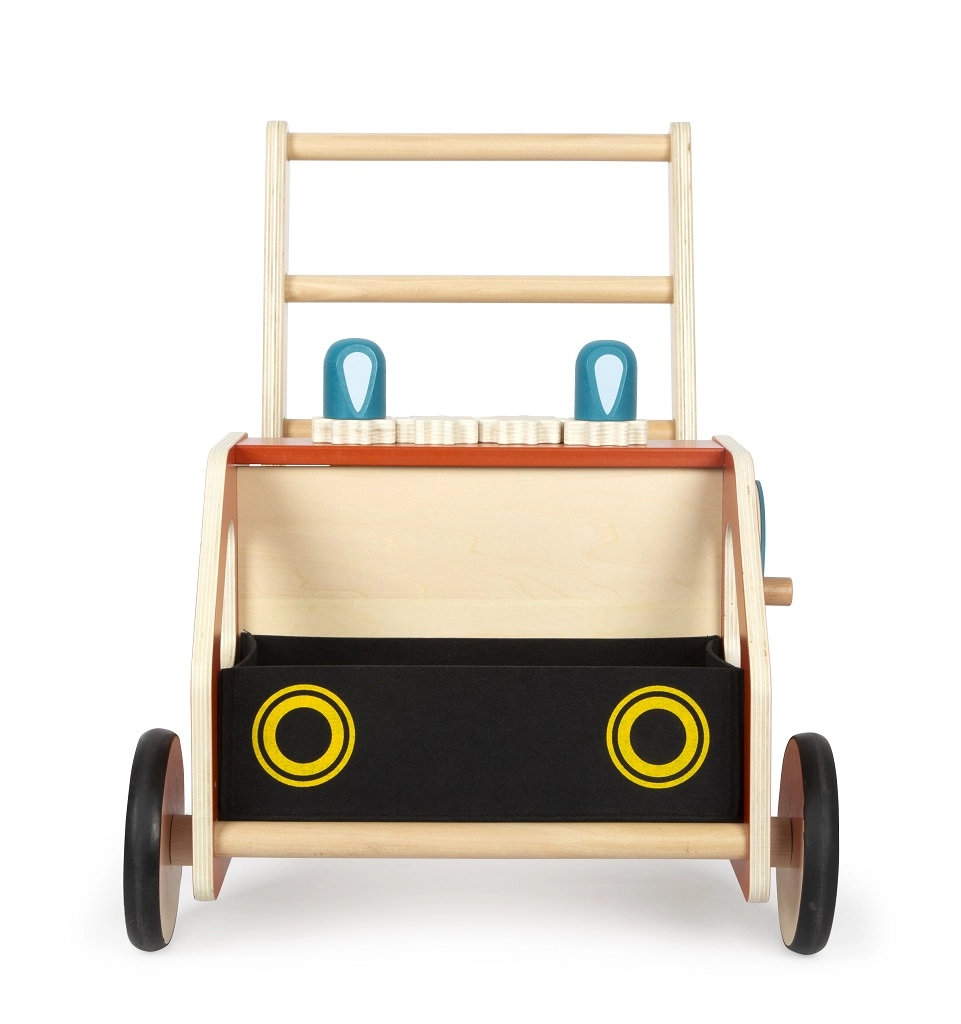 El elegante andador de madera de bomberos de la marca SMALL FOOT apoya los primeros pasos con una estructura robusta, sistema de frenado y ruedas silenciosas engomadas. Elementos interactivos como engranajes, rueda giratoria con manivela y luces móviles desarrollan la motricidad y la coordinación, mientras que la cesta extraíble de fieltro ofrece un almacenamiento práctico para tesoros.