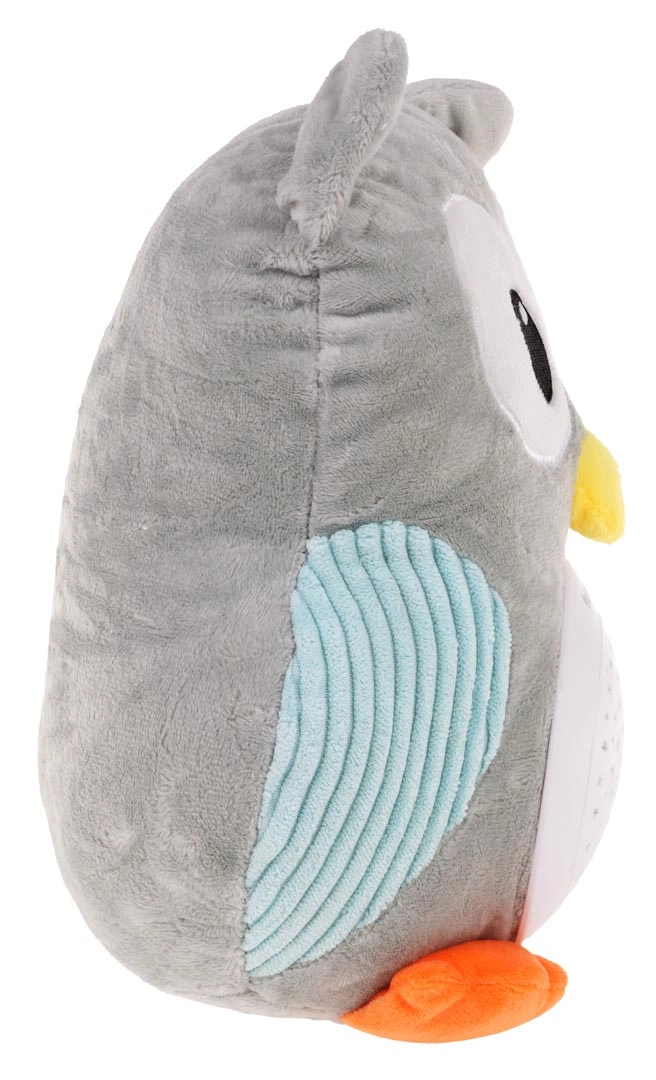El proyector integrado en la barriguita del búho proyecta estrellitas de colores que ayudan a crear un ambiente tranquilo para dormir y descansar.