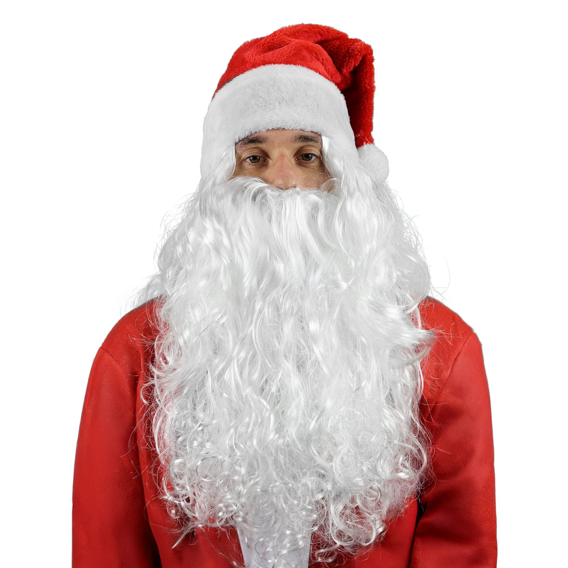Esta peluca con larga barba blanca y sombrero crea el aspecto tradicional de San Nicolás.