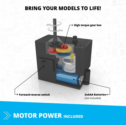 Gracias al motor con caja de engranajes y alto par, tus modelos cobran vida con movimiento. El set apoya los principios STEM (ciencia, tecnología, ingeniería y matemáticas) y motiva a los niños a experimentar y a crear sus propias construcciones.